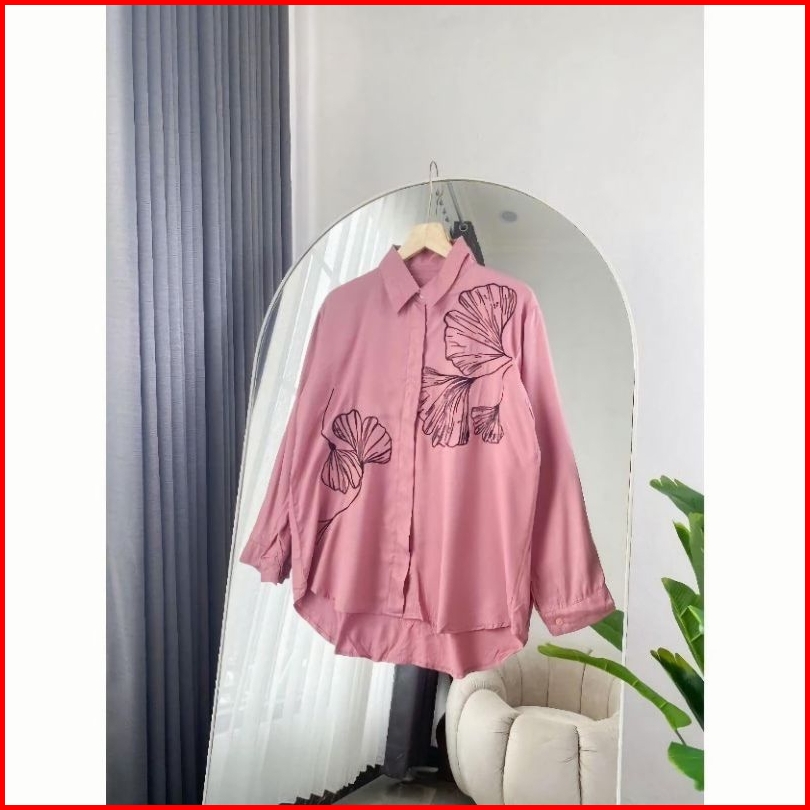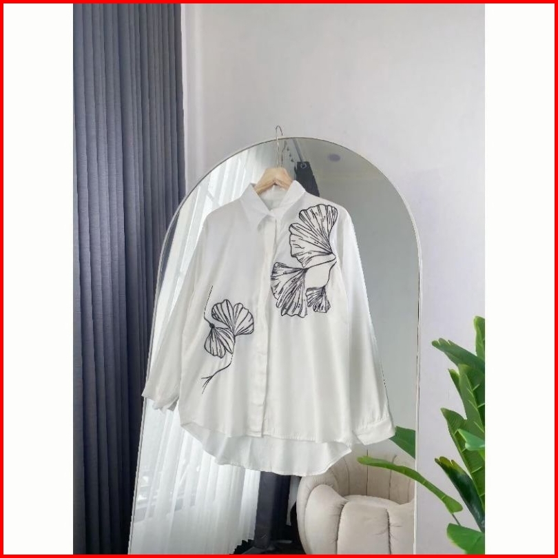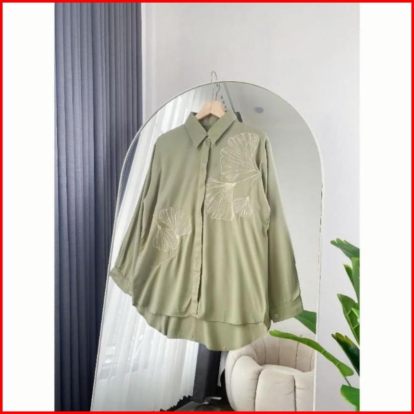Kemeja Anggun Bordir Bunga Lengan Panjang - Atasan Bordir Korean Look - Kemeja Wanita Bordir Kancing Basic - Blouse Tren