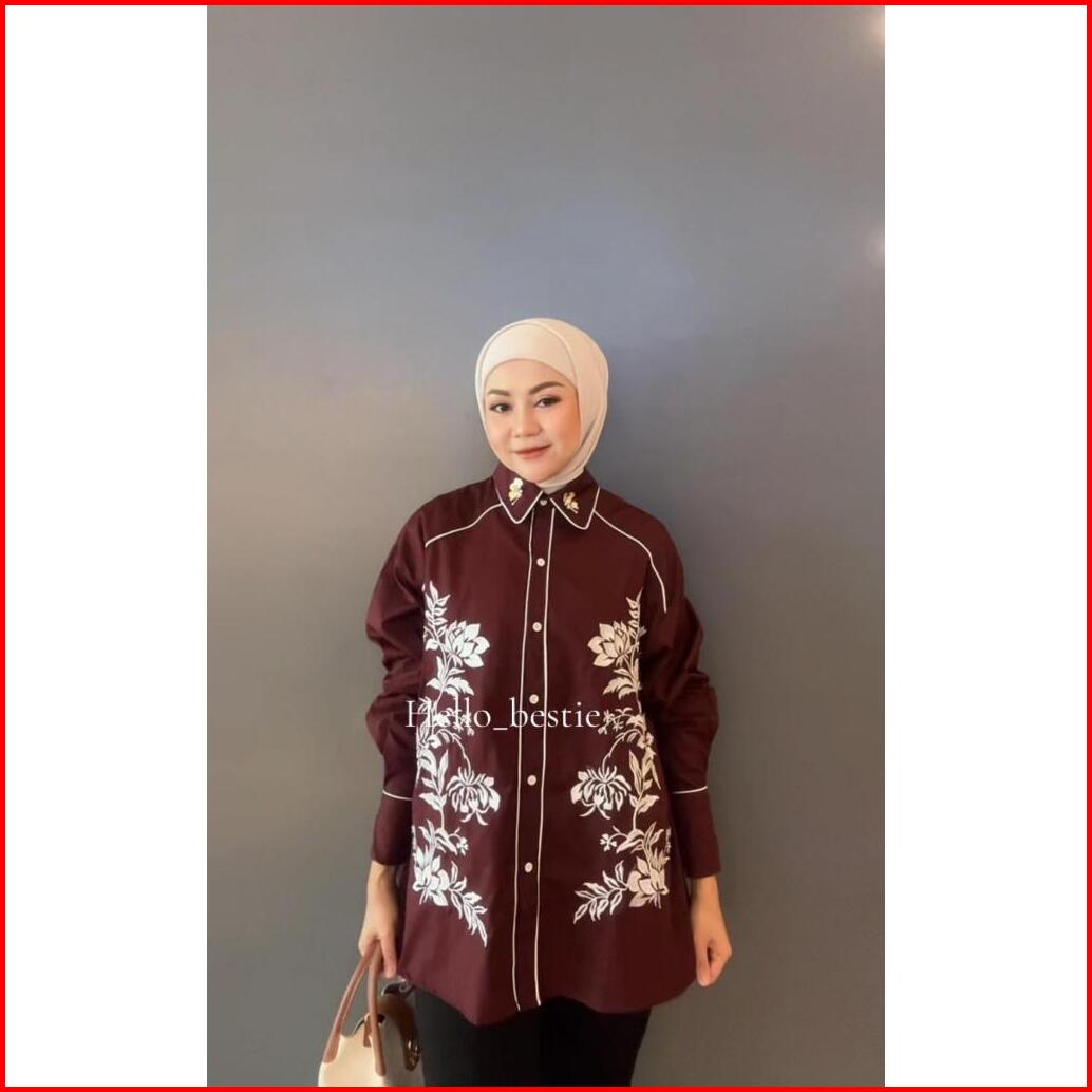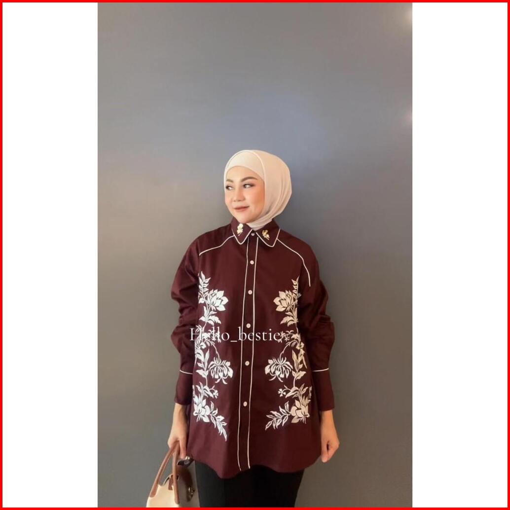 Hello Bestie - Aresta Oversize Ld 130cm - Kemeja Wanita Oversize Lengan Panjang Katun Bordir Bunga Casual