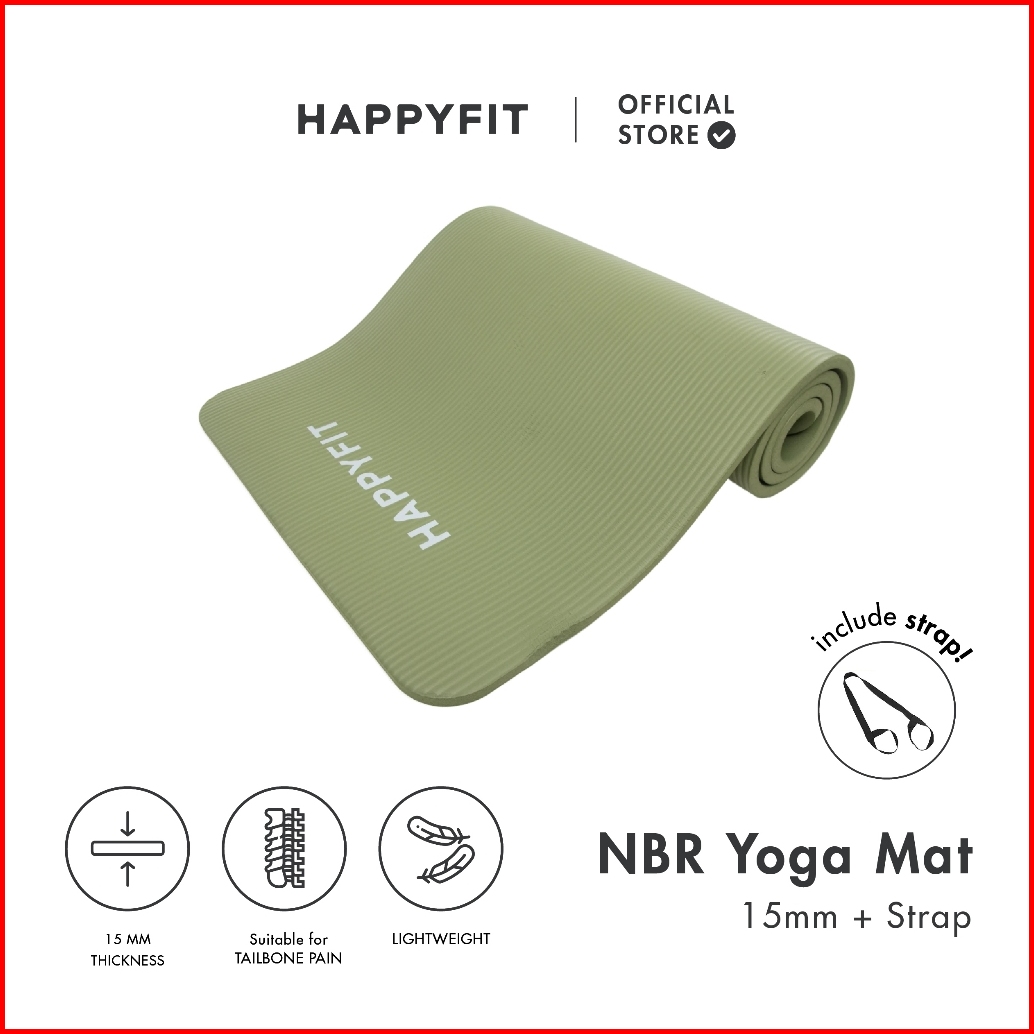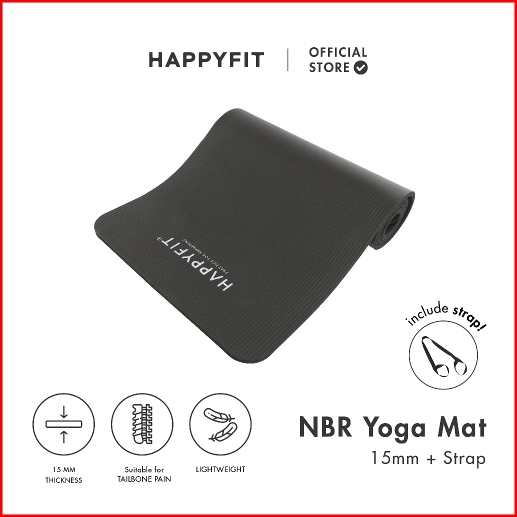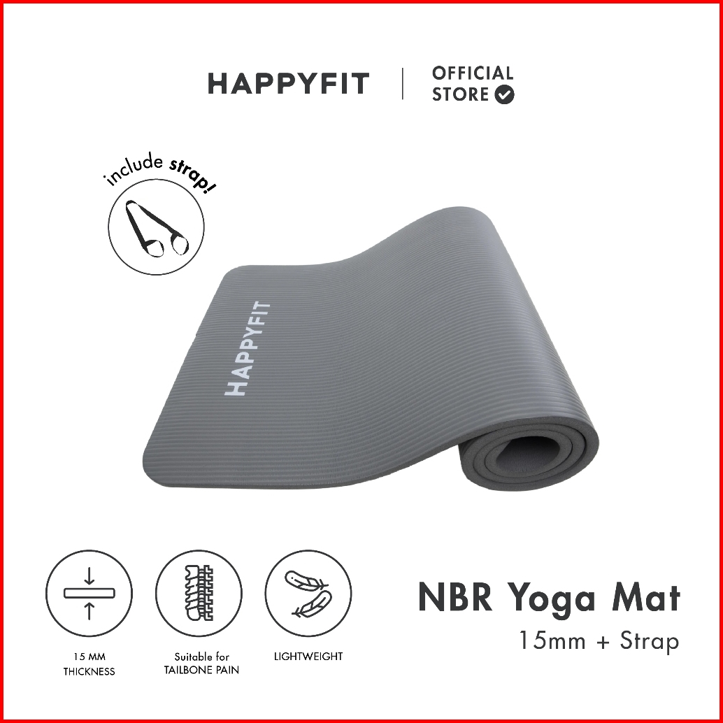 Happyfit - Yoga Mat Polos Nbr 15mm Free Strap Matras Yoga Matras Olahraga Matras Nbr