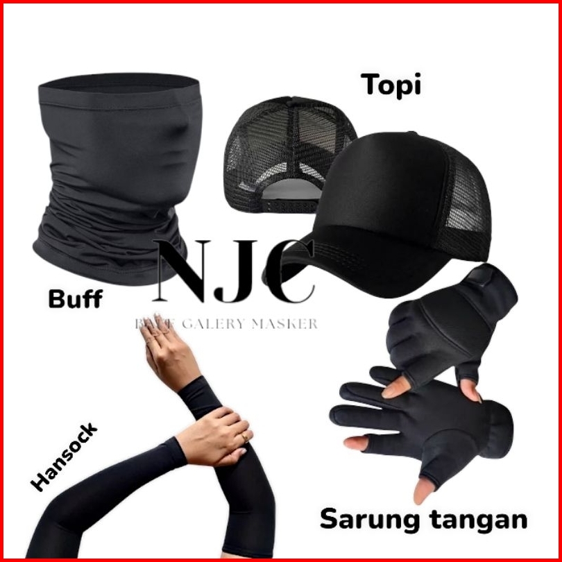 4 In 1 Paket Hemat Mancing Topi Dan Sarung Tangan 2 Jari Buntung Dan Baff Masker Manset Tangan