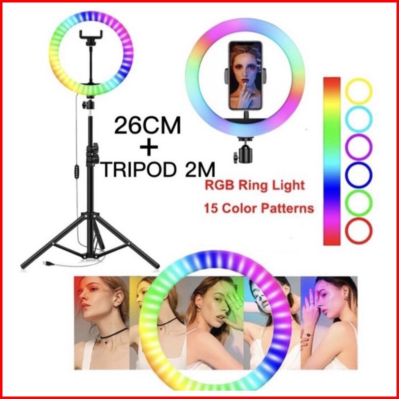 Termurah Ring Light Led 26cm 33cm 45cm 3 Warna Rgb Beauty Ringlight Vlog Konten Selfie Plus Tripod Komplit Wajib Order B