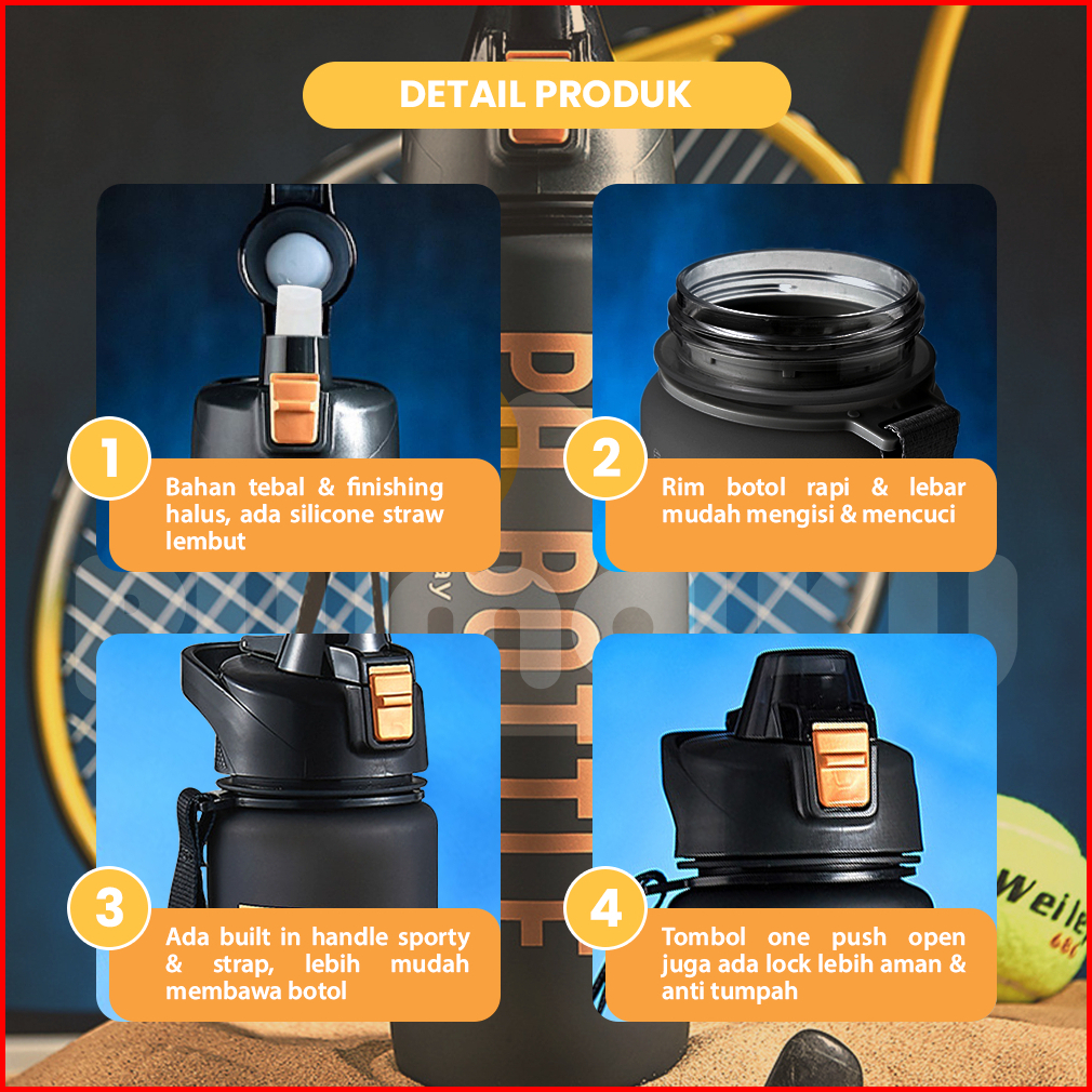 Rumaku Botol Minum 1 Liter Premium Water Bottle Sporty Olahraga Lock One Push Anti Bocor Bpa Free