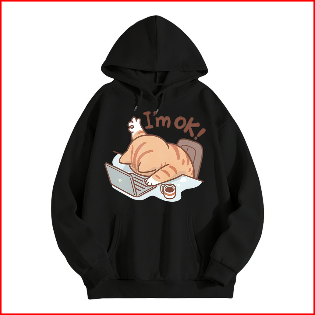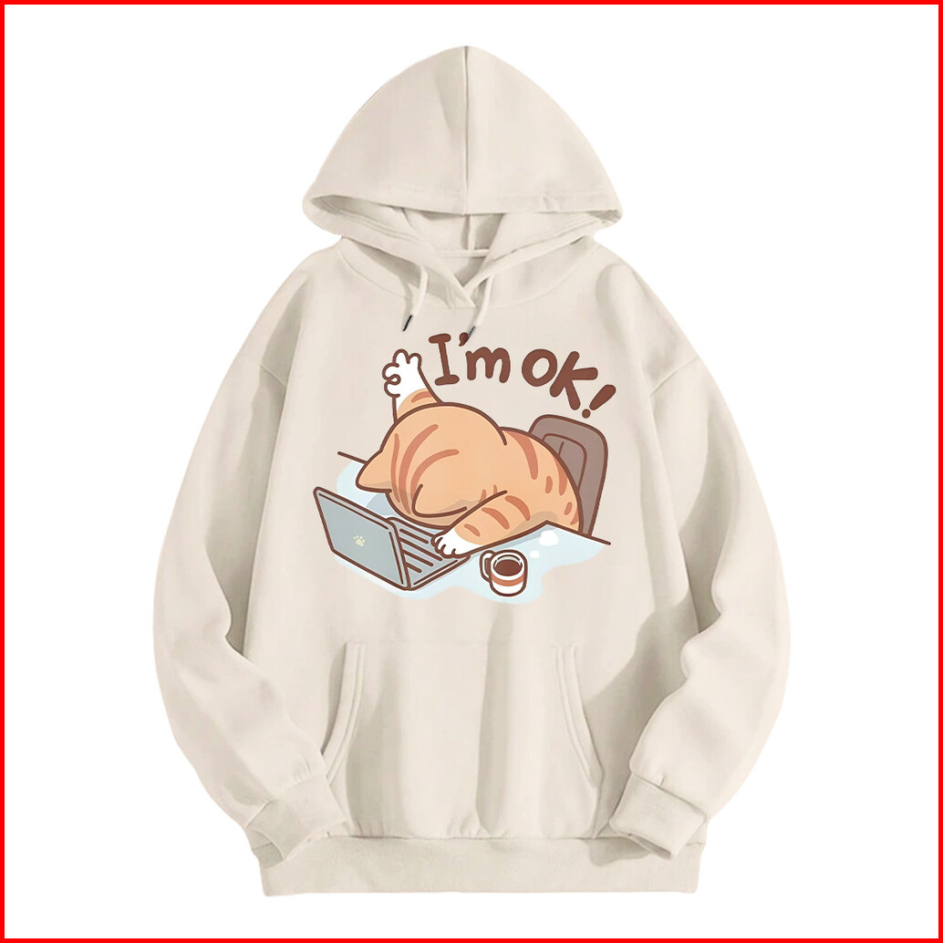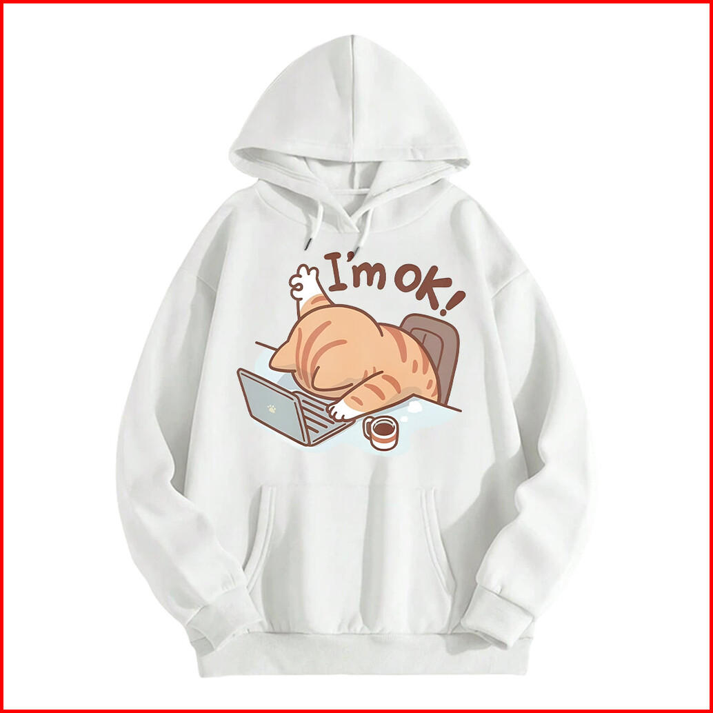 Jessica Hoodie Oversize Motif I M Ok Cute Cat Korean Style Baju Bahan Milk Cotton