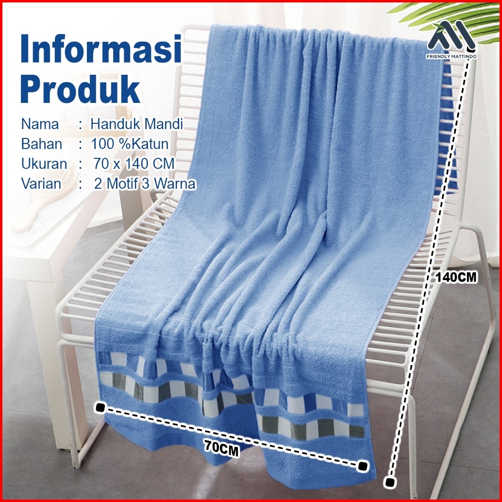 Handuk Mandi Dewasa 100 Cotton Premium Motif Bordir 70x140cm Nyerap Air Mj-2a B C