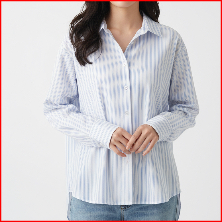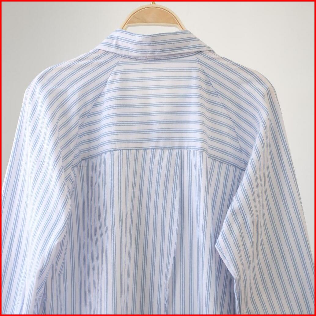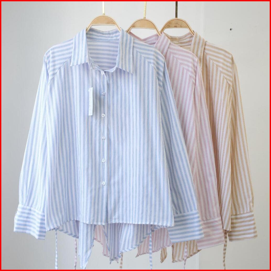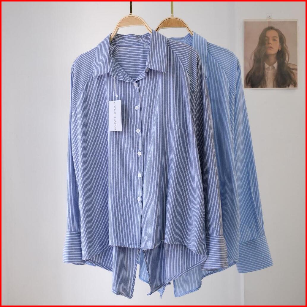 Kemeja Salur Wanita Lengan Panjang Korean Katun Yanded Stripe Salur Atasan Salur Wanita Model Belah Bagian Belakang