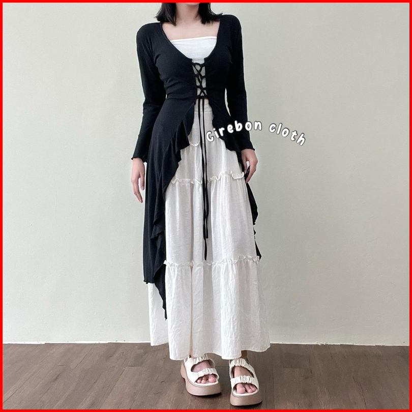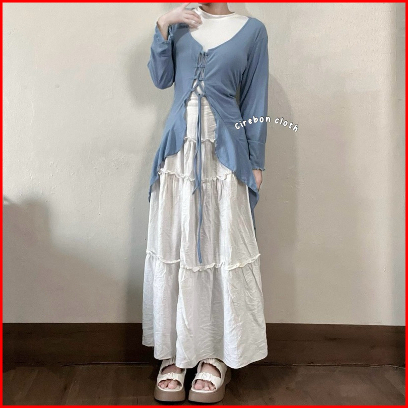 Kiyana Cirebon Cloth - Rose Ballerine Cardigan Cardigan Ruffle Long Cardy Long Outer