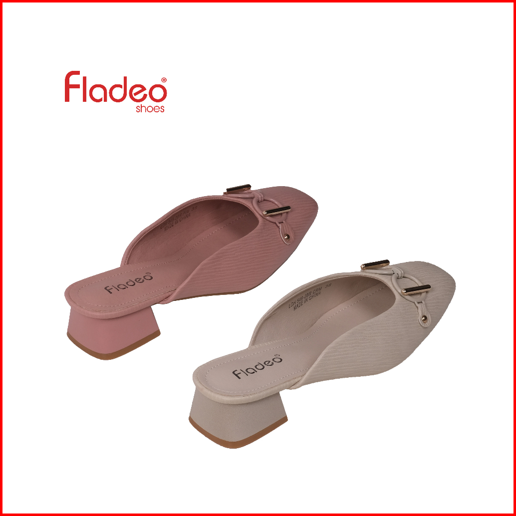Fladeo F23 Ldh548-2br Sepatu Slop Hak Tahu Wanita Mules Block Heel Shoes