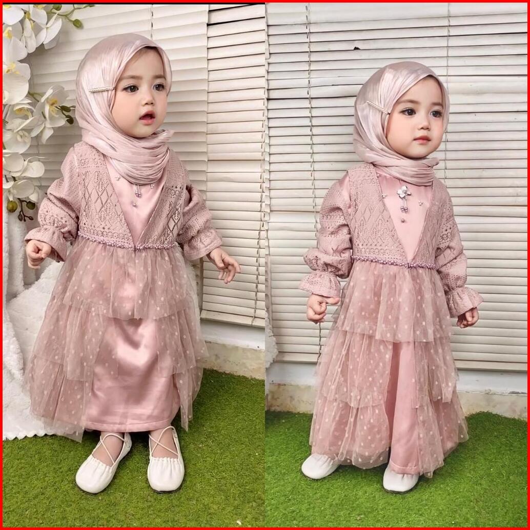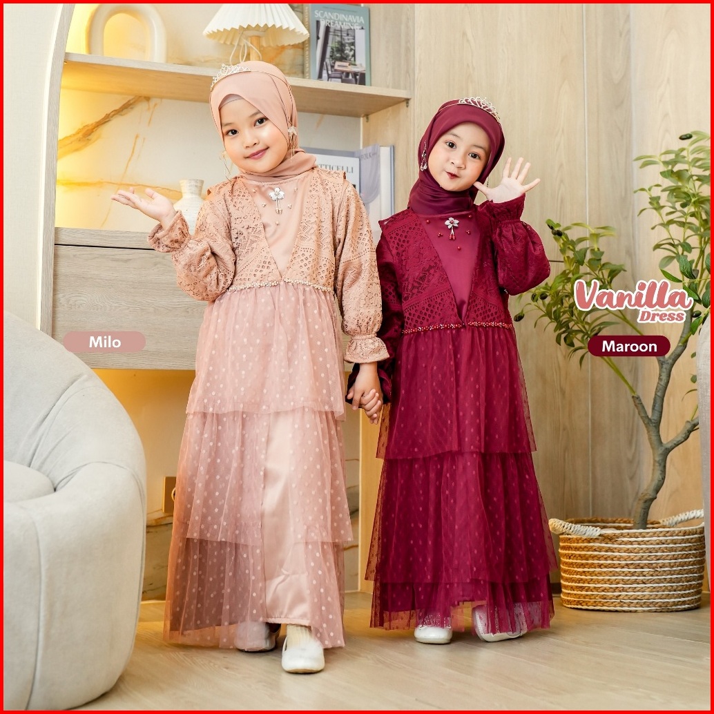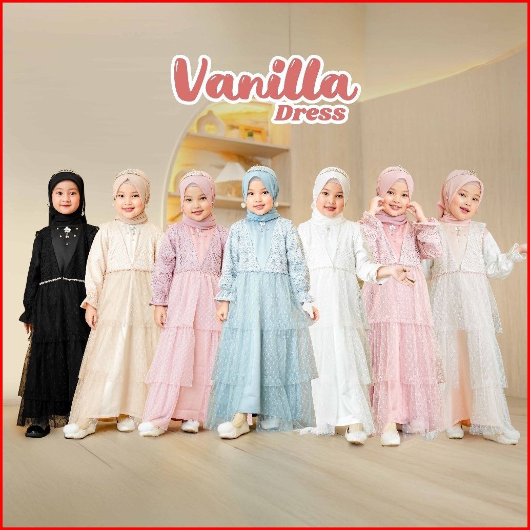 Terlaris Vanilla Dress - Baju Dress Pesta Premium 1-13 Tahun Dress 2in1 Gamis Anak Perempuan Termurah
