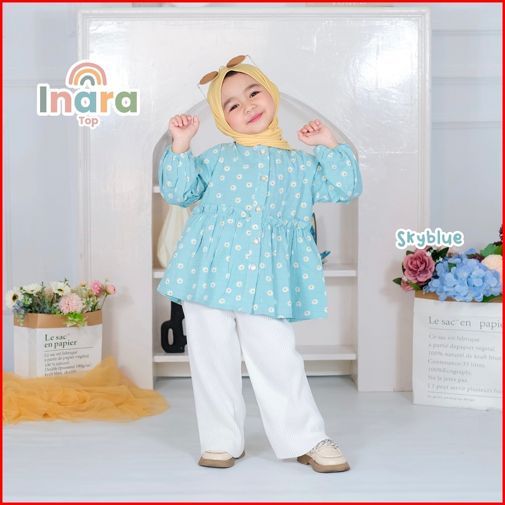 Inara Top Atasan Blouse Korea Crinckle Ruby Premium Lengan Panjang Anak Perempuan Usia 1 - 8 Tahun