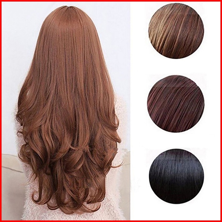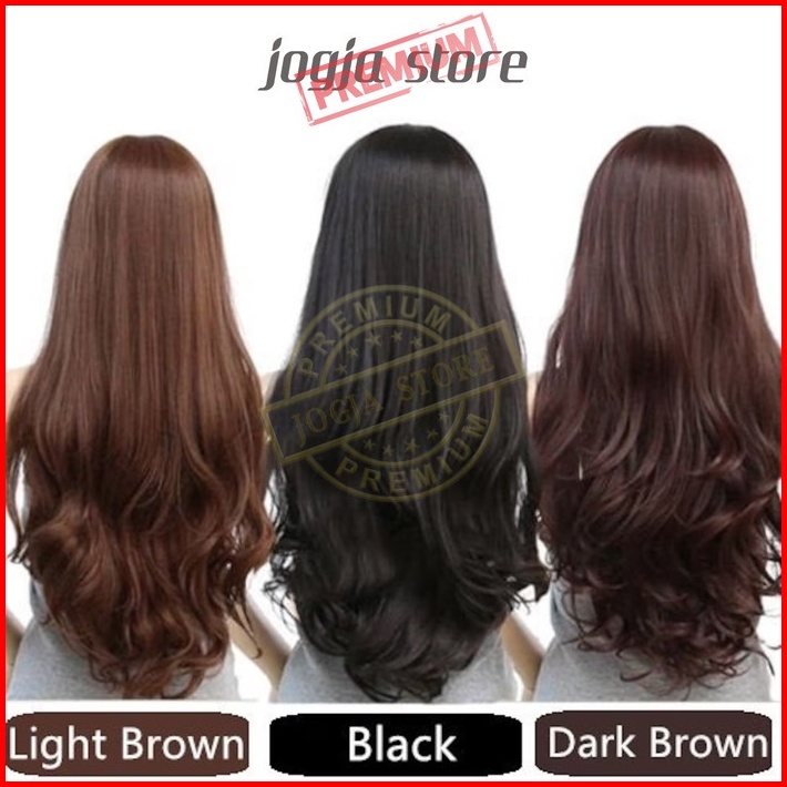 Wig Rambut Palsu Wanita 65 Cm Bahan Fiber Model Lurus Gelombang Curly