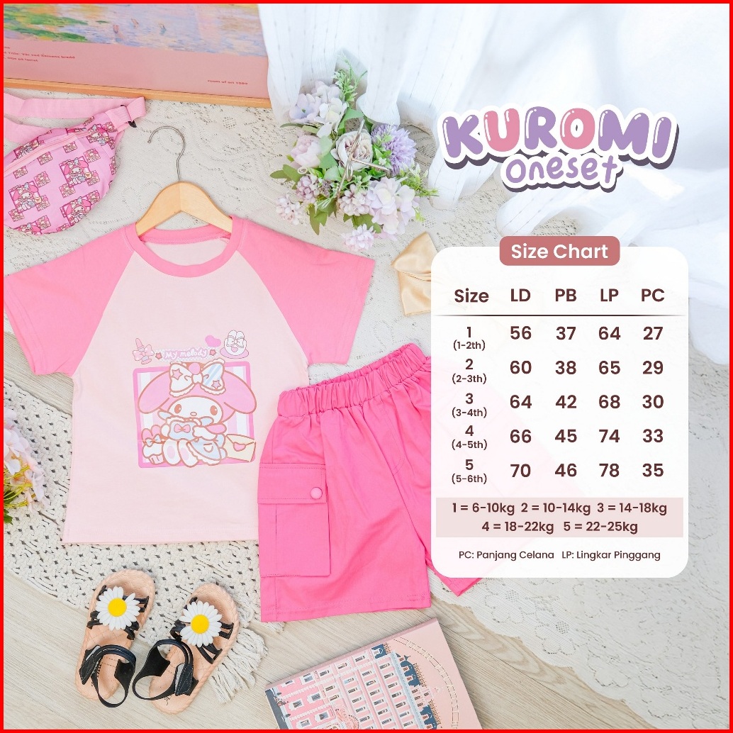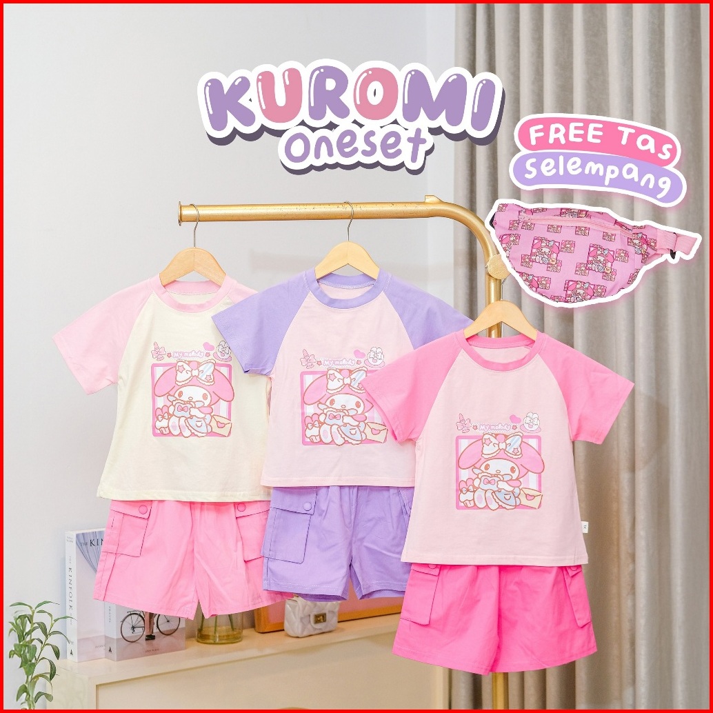 Free Tas Selempang Kuromi Oneset - Setelan Anak Perempuan Usia 1-6tahun - Baju Anak Bahan Kaos