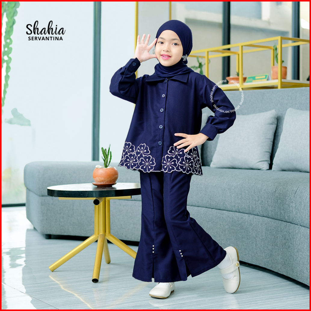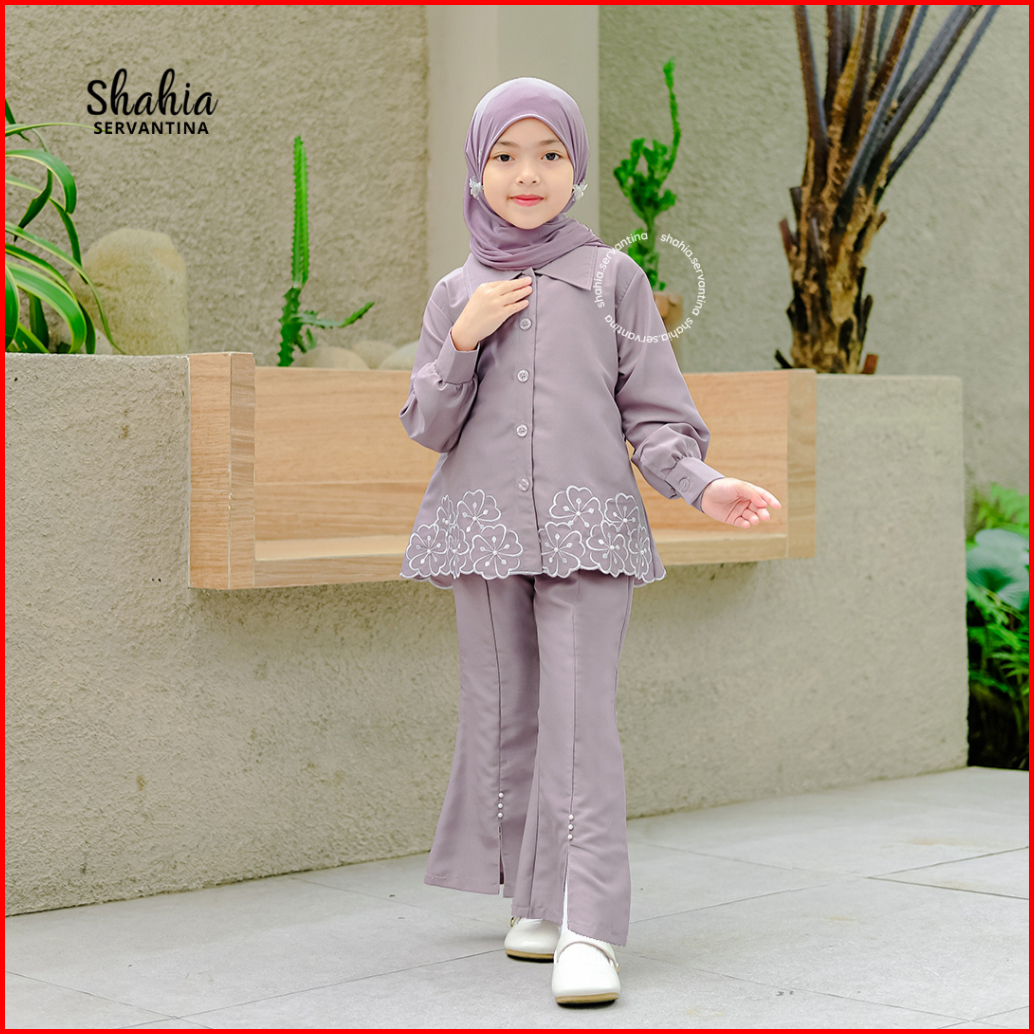 Shahia Servantina - Fresia Oneset Bordir Setelan Celana Anak Perempuan Muslim Panjang
