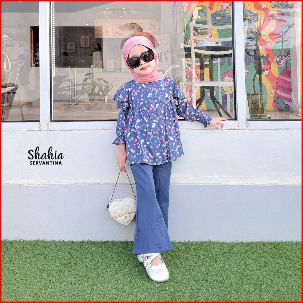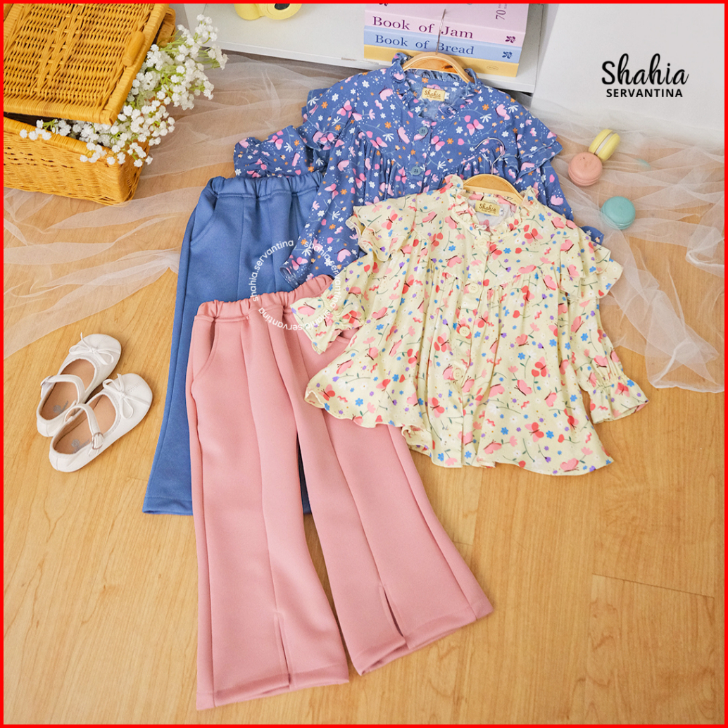 Shahia Servantina - Butterfly Oneset Rayon Setelan Celana Anak Perempuan Muslim Panjang