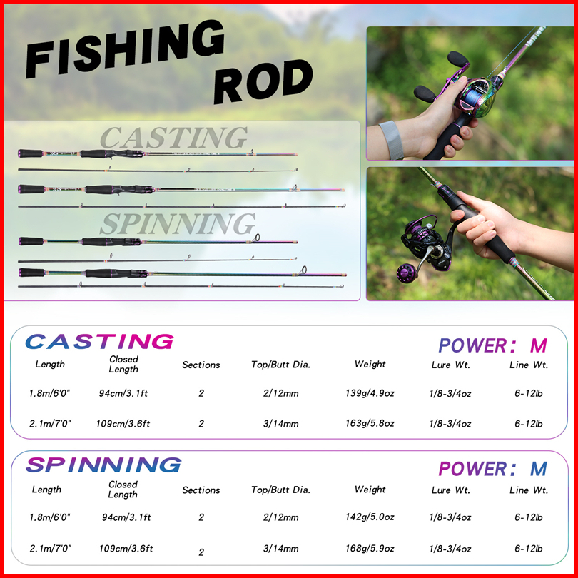 Sougayilang Joran Pancing 6-12lb 180-210cm Joran 2 Bagian Carbon Fiber Joran Ul Joran Bc