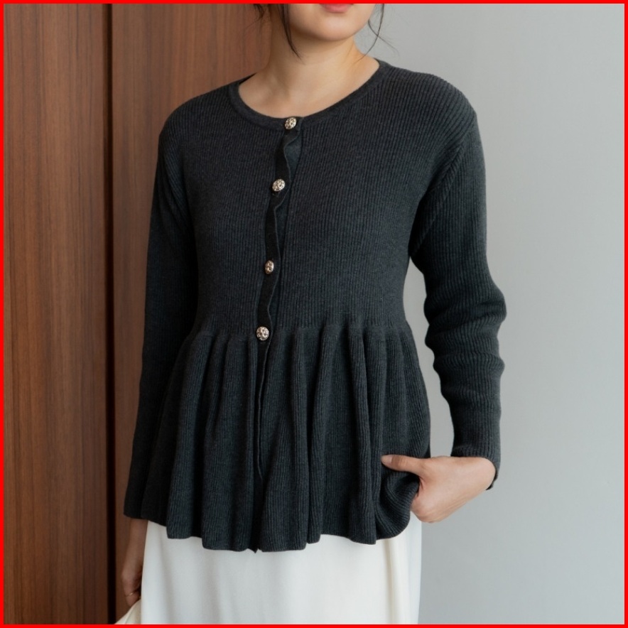 Cardigan Rajut Knit Peplum Wanita Lengan Panjang Kardigan Ruffle Korea Style Terbaru