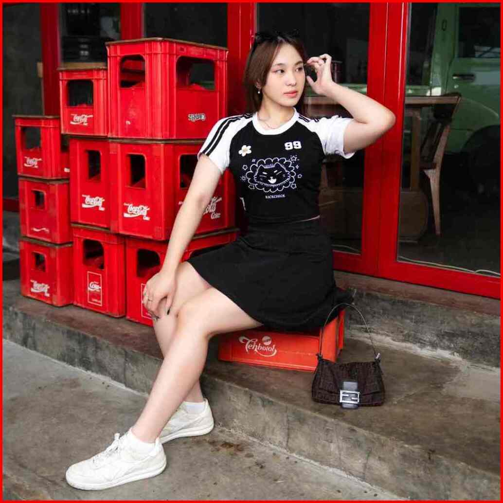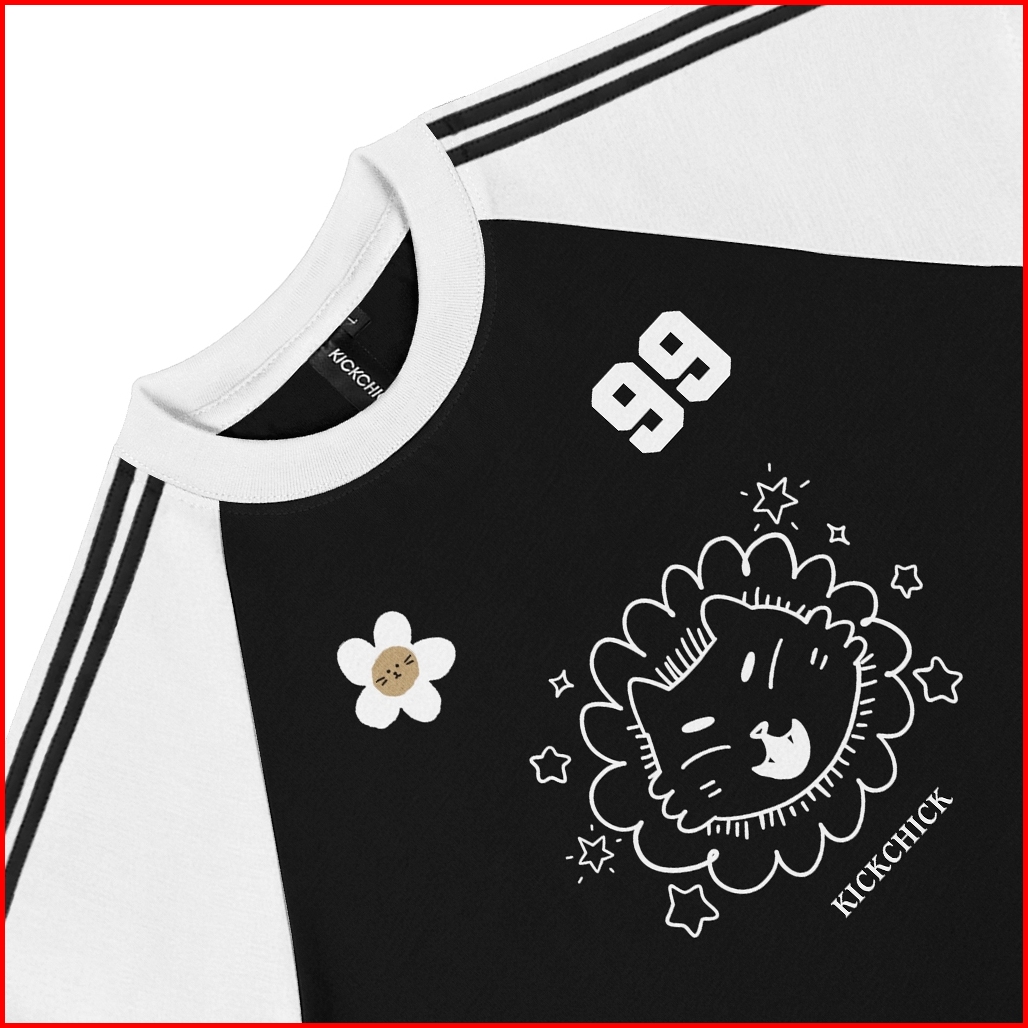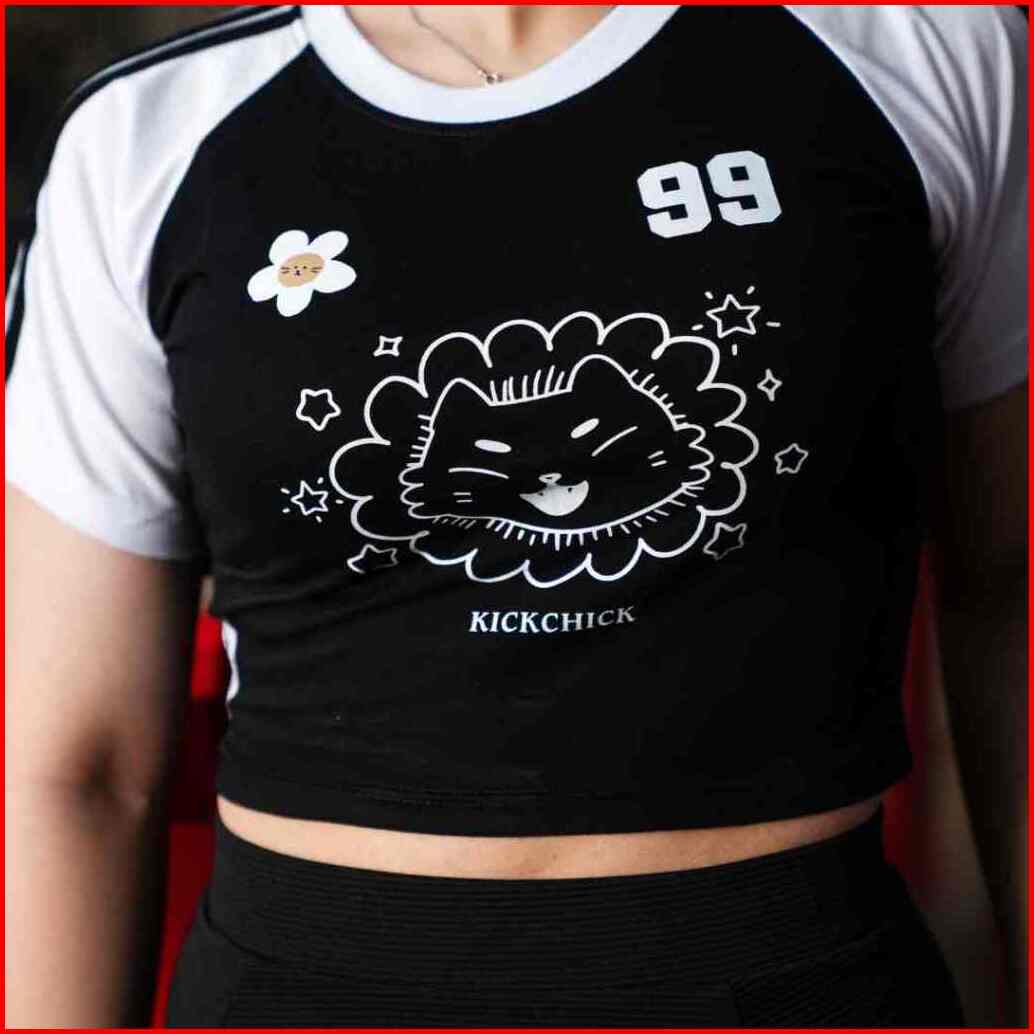 Kickchick Croptop Slimfit String Star Cat 99 Black White Tshirt Crop Kaos Atasan Croptee Kc-csf-strings003