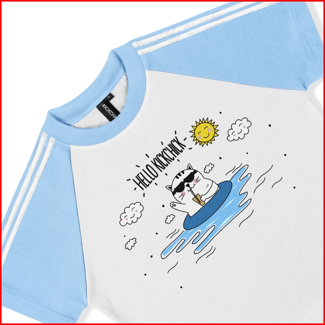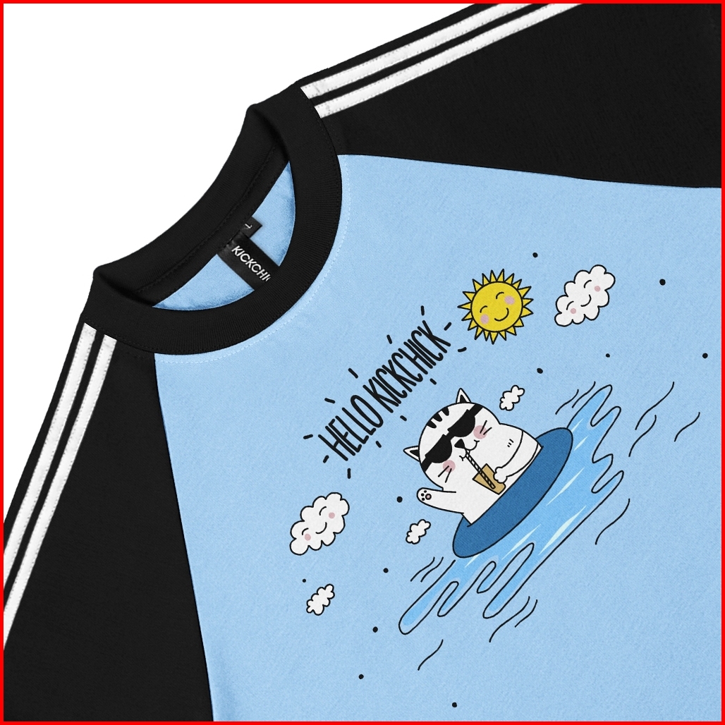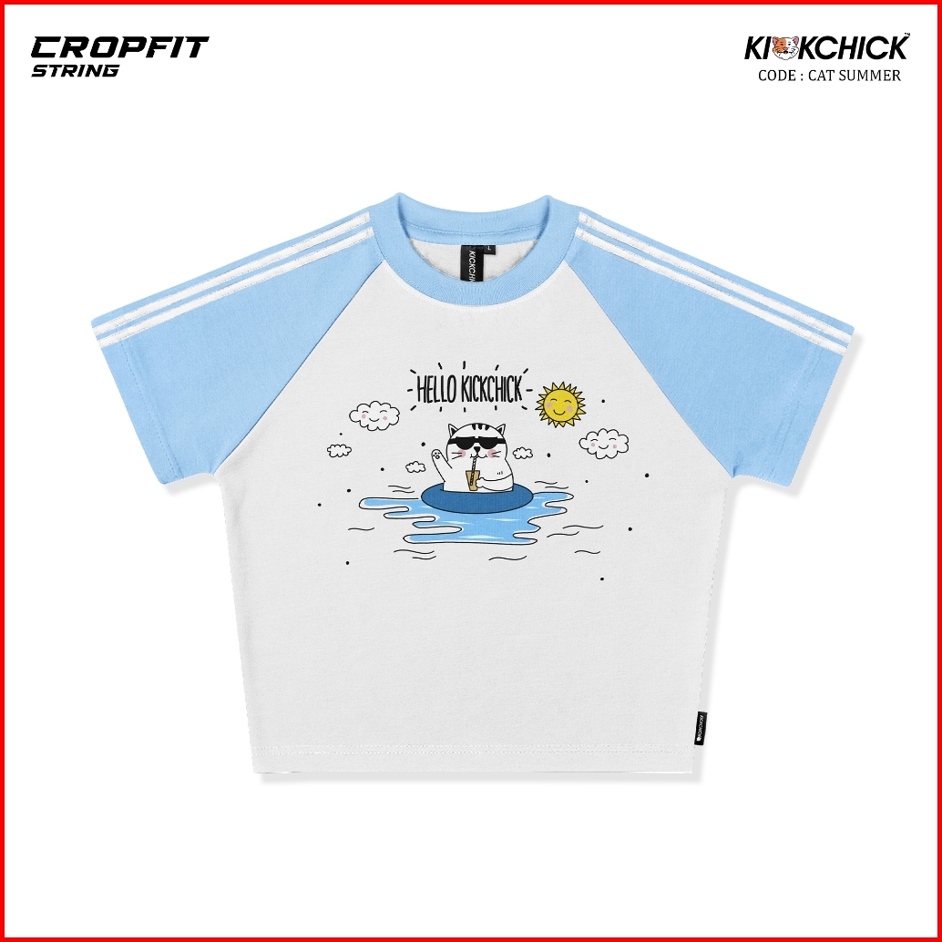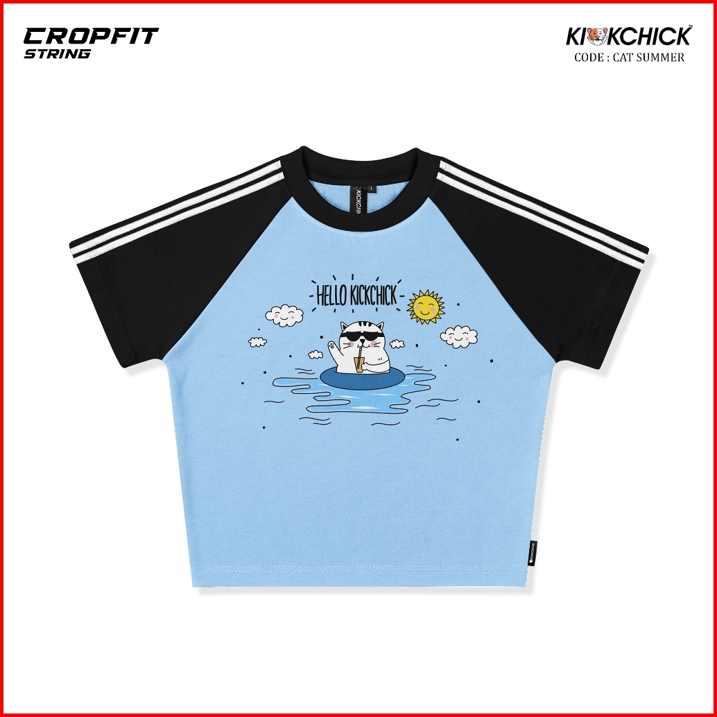 Kickchick Croptop Slimfit String Cat Summer Baby Blue Black Tshirt Crop Kaos Atasan Croptee Kc-csf-strings004