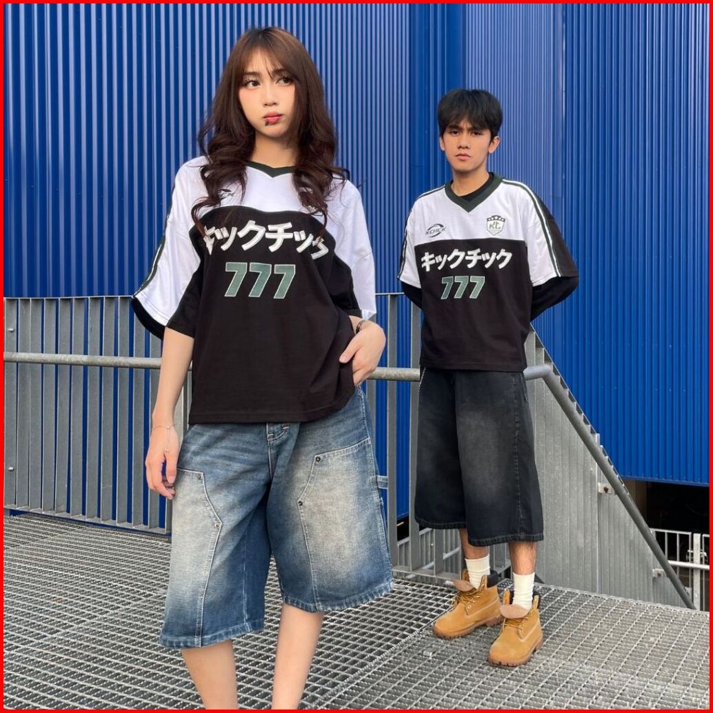 Kickchick V-neck Boxyfit Triple Seven Black White Kaos Oversize Boxy Atasan Kc-ovzbx-vn002