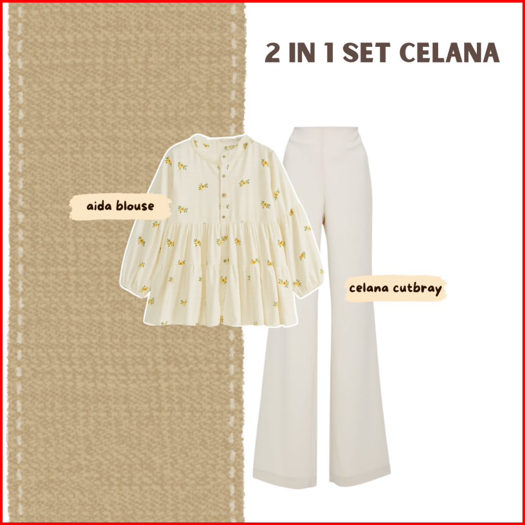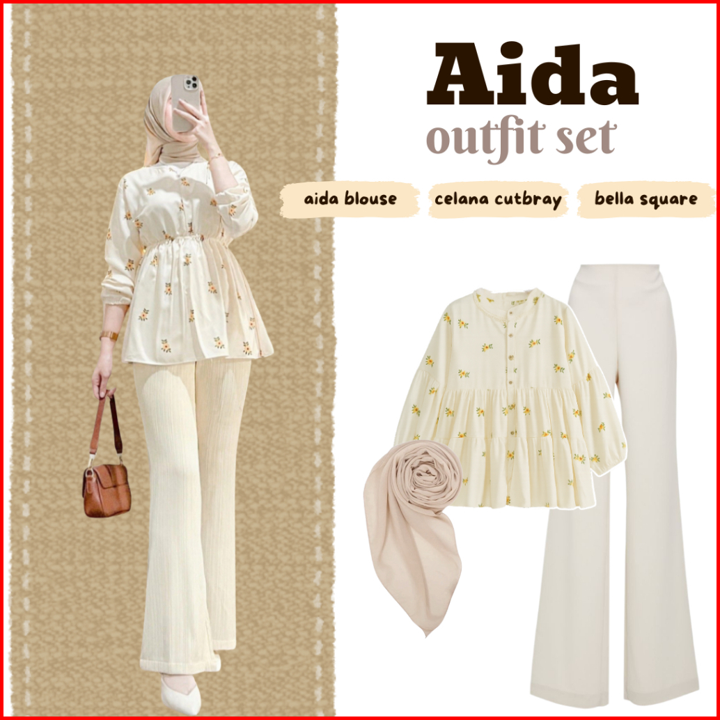 Ootd Hijab Kekinian Aida Blouse Celana Cutbray Hijab Bella Square One Set Remaja Casual Look Fs41
