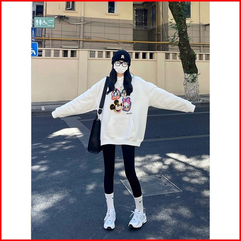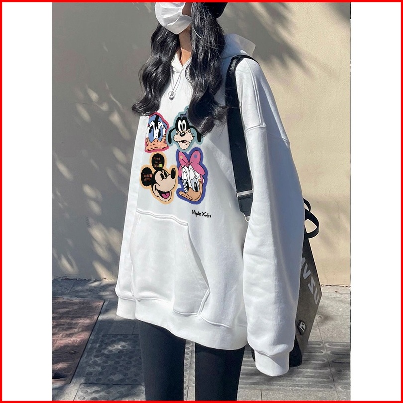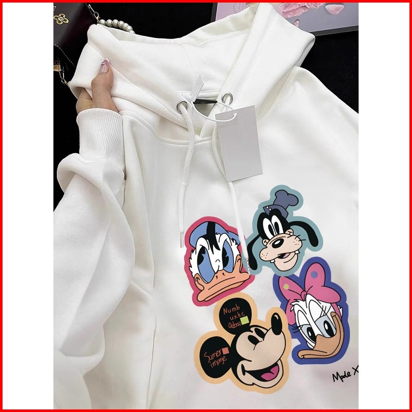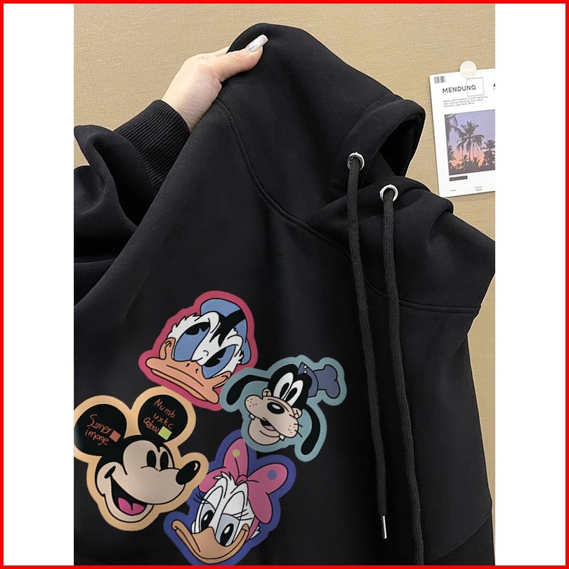 Forteid Couple Hoodie Sweater Wanita Oversize Cetakan Mickey Mouse Korean Style Baju Wanita Kekinian Baju Wanita Switer