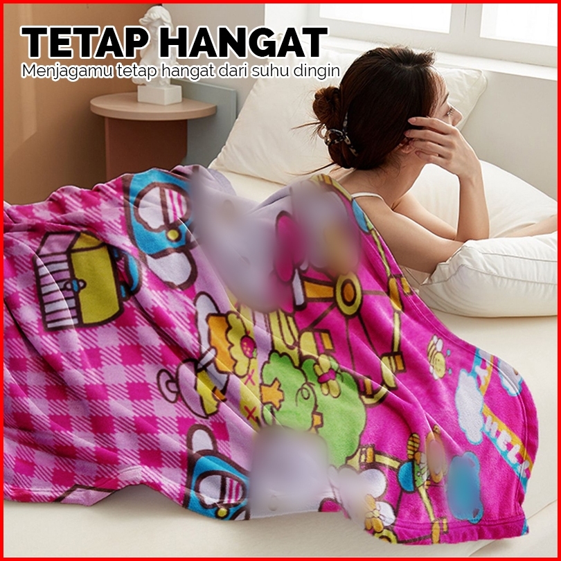 Selimut Bulu Halus Motif Karakter Anak Lucu 125x175 Cm Bahan Polyester Tebal Premium Hk300