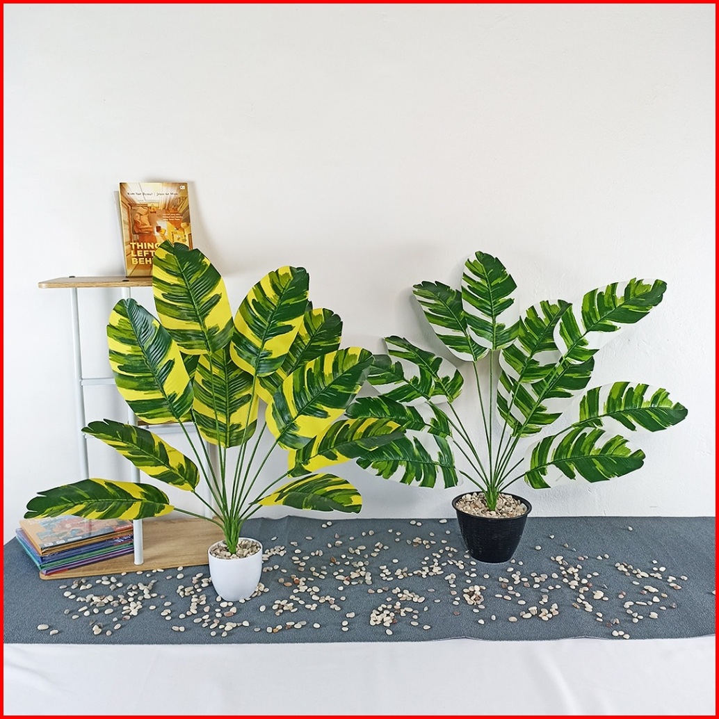 Tanaman Hias Tangkai Daun Monstera Hijau Plastik Artificial Pot Besar Dekorasi Rumah Import Pbp40