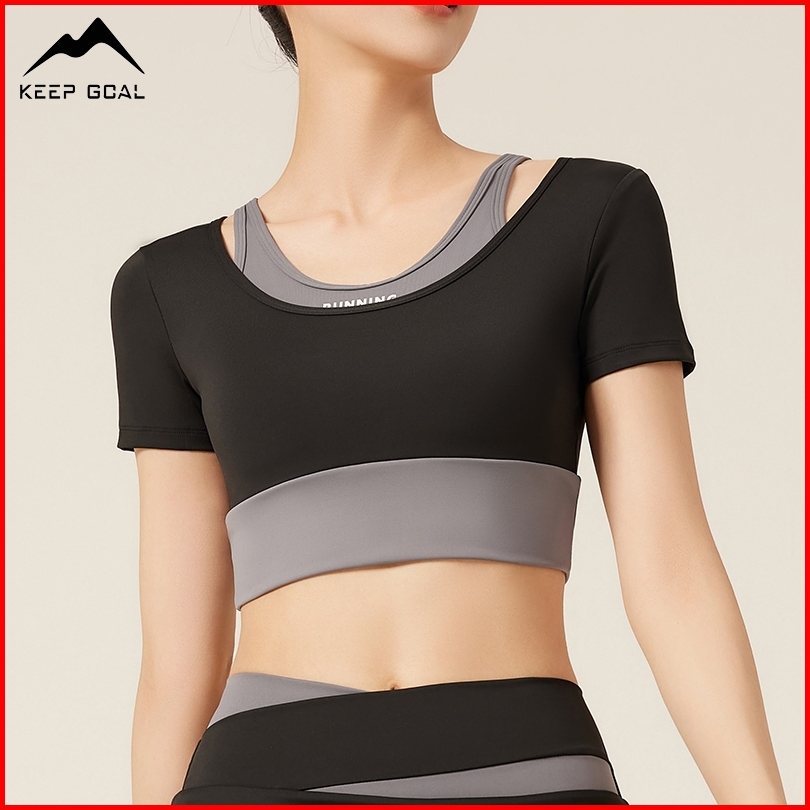 Keep Goal Wanita Baju Lengan Pendek Olahraga Yoga Sport 2in1