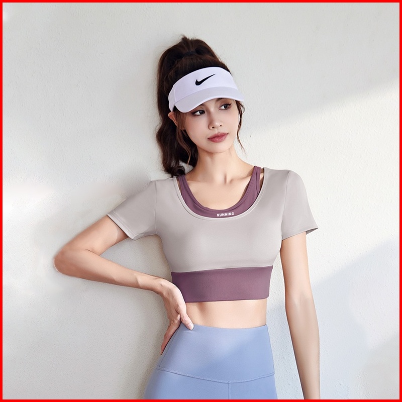 Raga Baju Olahraga Wanita Kaos Sport Baju Lengan Pendek Wanita Gym Yoga Built-in Bra