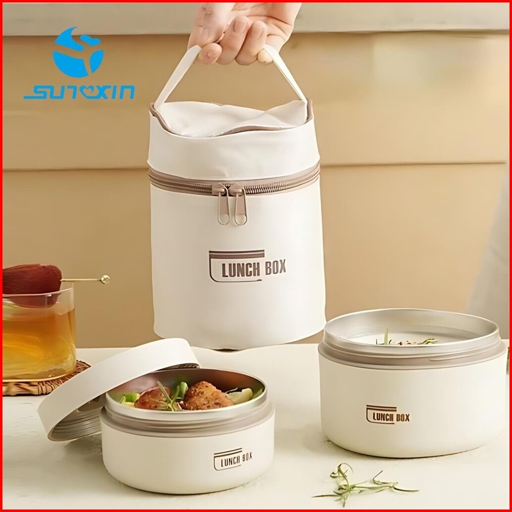 Sunxin Stainless Lunch Box Kotak Makan Siang Bento Portabel Tahan Bocor Gaya Jepang Round Stainless Lunch Box