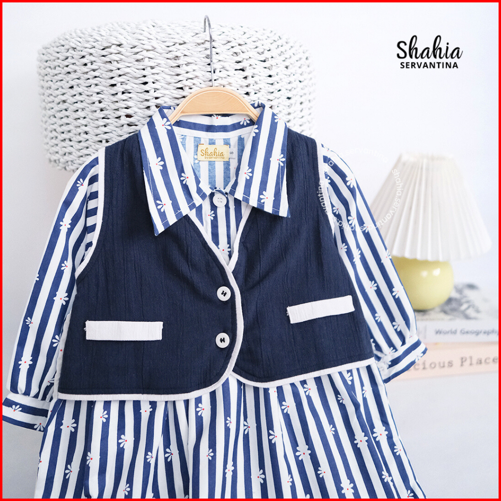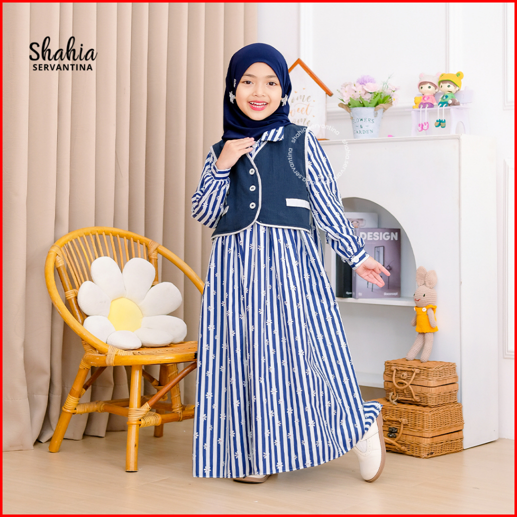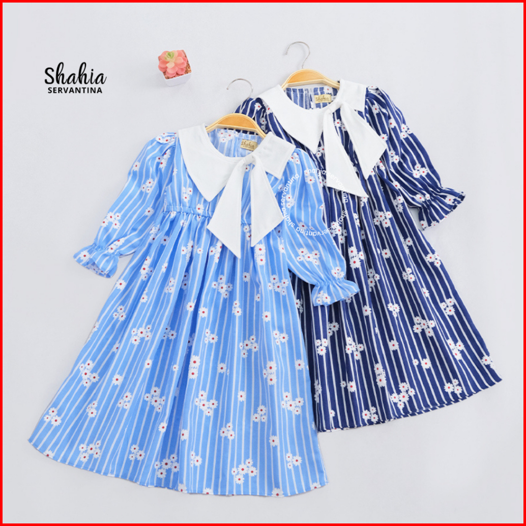 Shahia Servantina - Katlyn Veronica Dress Gamis Katun Salur Pita Anak Perempuan