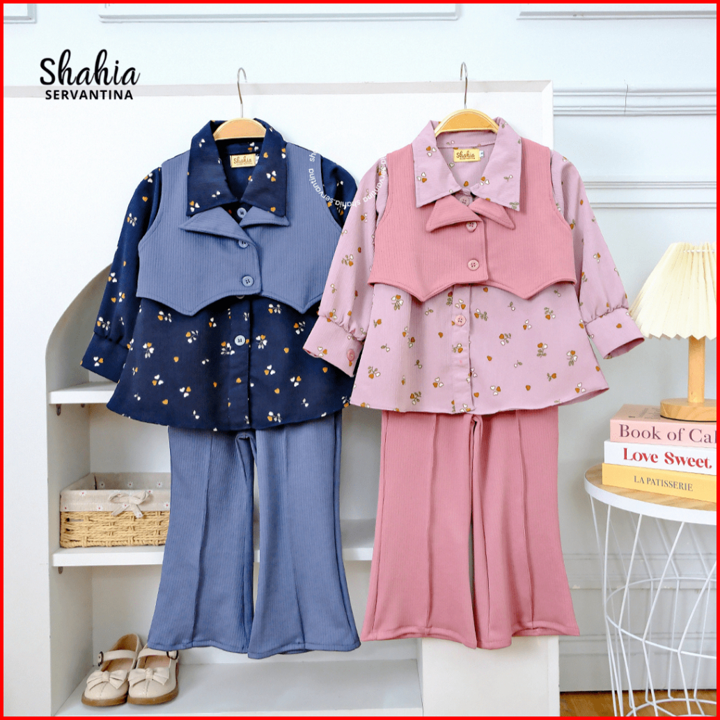 Shahia Servantina - Alexa Oneset Setelan Celana Anak Perempuan Muslim Panjang