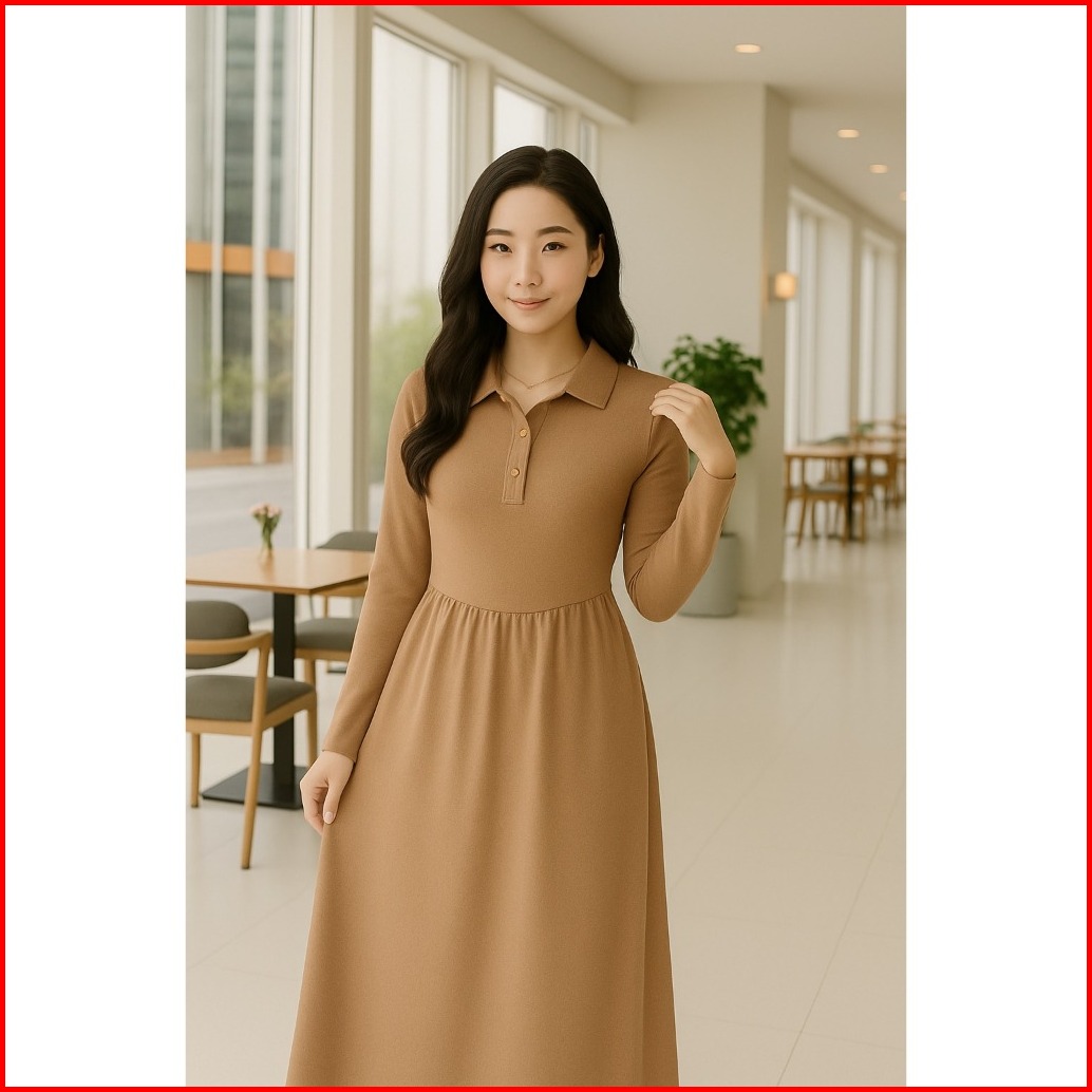 Kaleena Long Dress Wanita Lengan Panjang Gaun Casual Midi Casual Dewasa Baju Pesta Remaja