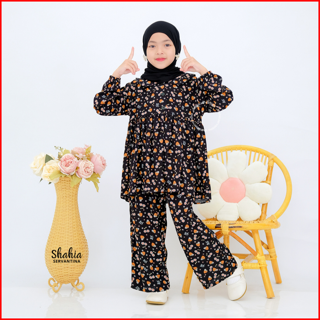 Shahia Servantina - Cesie Oneset Rayon Twill Setelan Celana Anak Perempuan Muslim Panjang