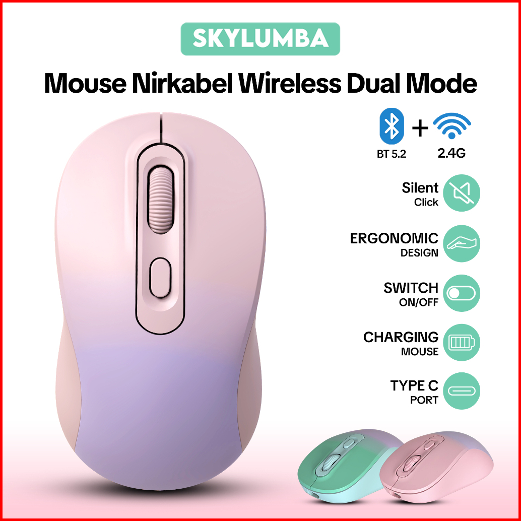 Skylumba Dual Mode Colorful Wireless Mouse Silent Click Bluetooth 2.4g Support Laptop Pc Tab Ipad Kursor Akurat - Mw02