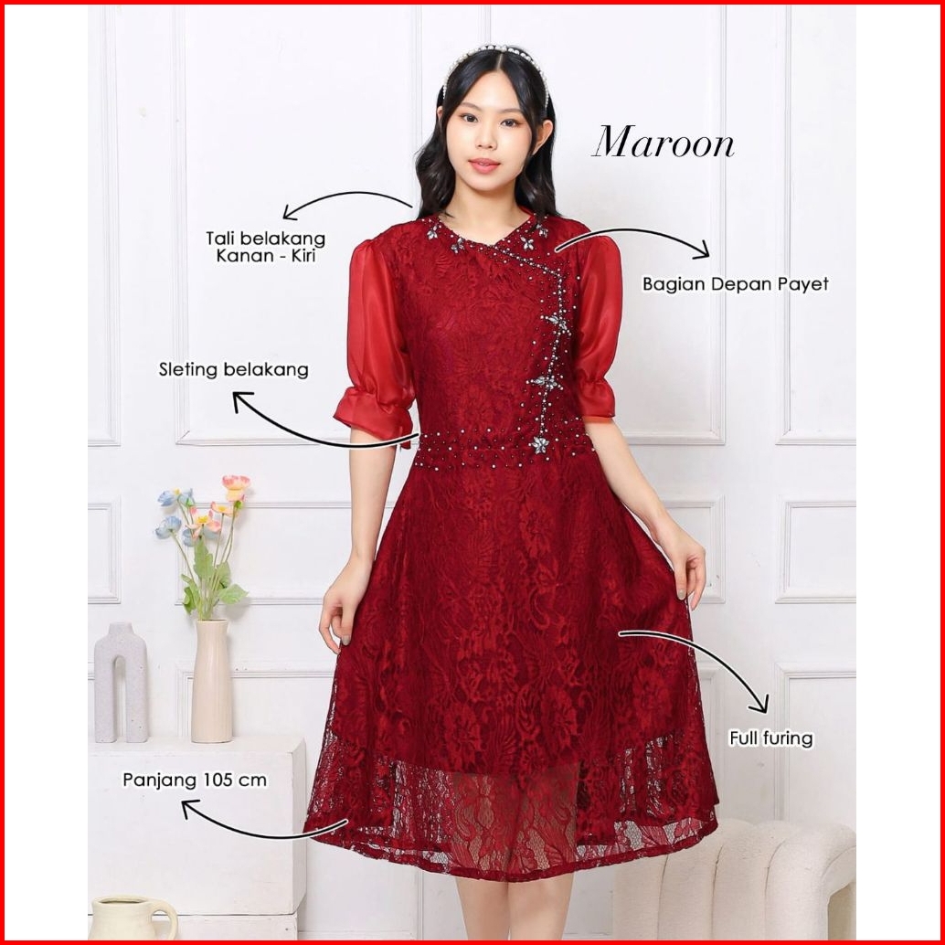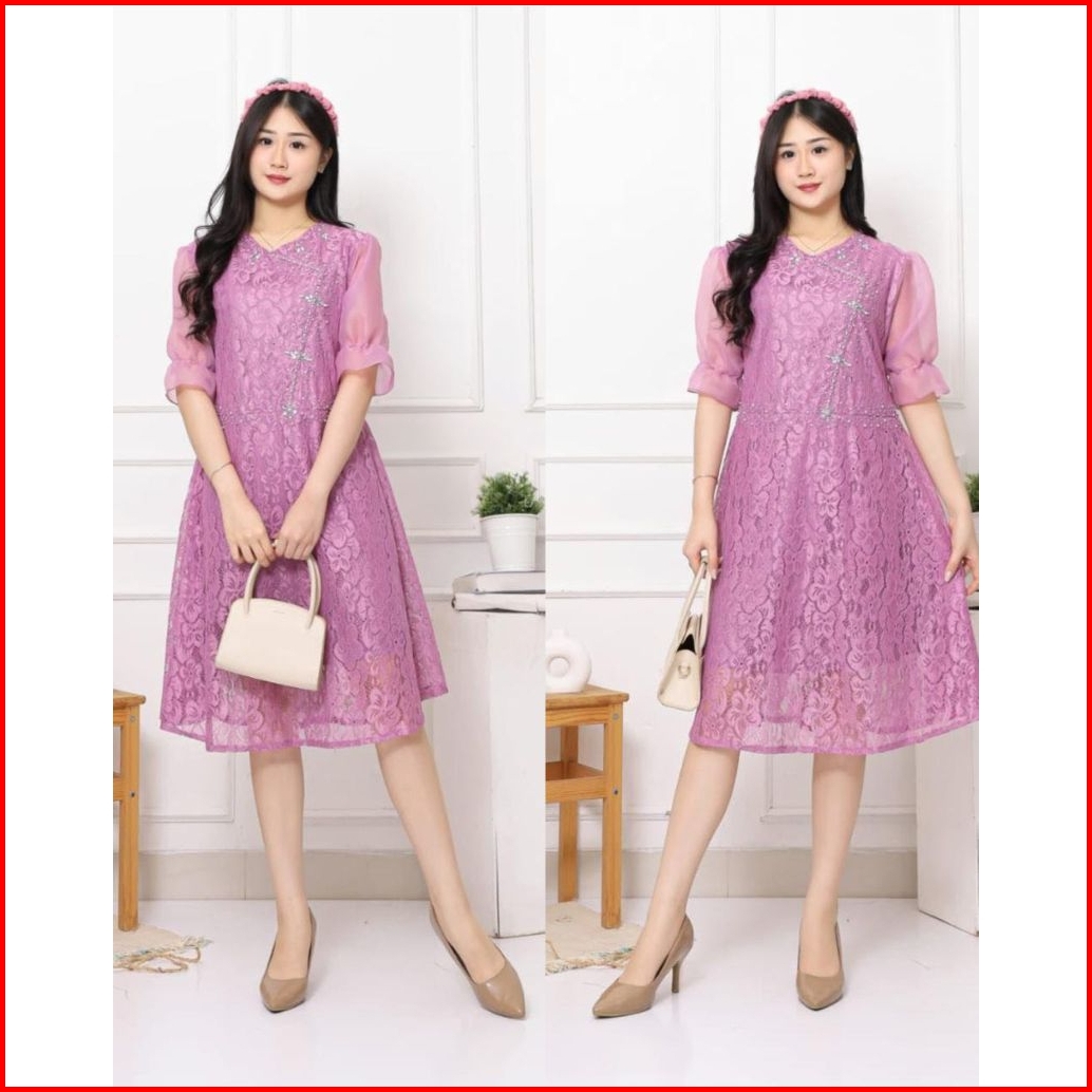 Terbaru Dress Samira Brukat Premium Full Furing Mix Organza Dress Natal Dress Pesta Dress Elegan