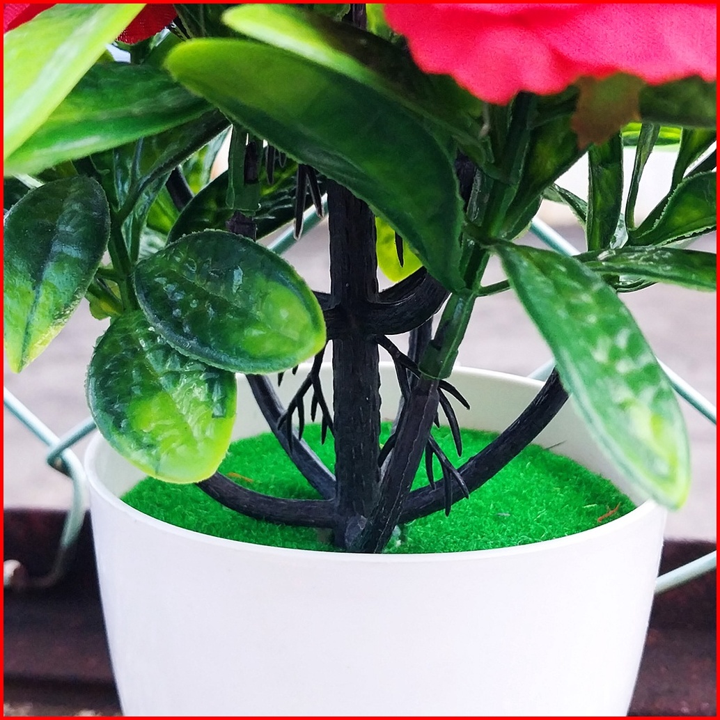 Tanaman Bunga Mawar Hias Plastik Ornamen Pot Hias Pajangan Dekorasi Rumah Artificial Flower Pbp62