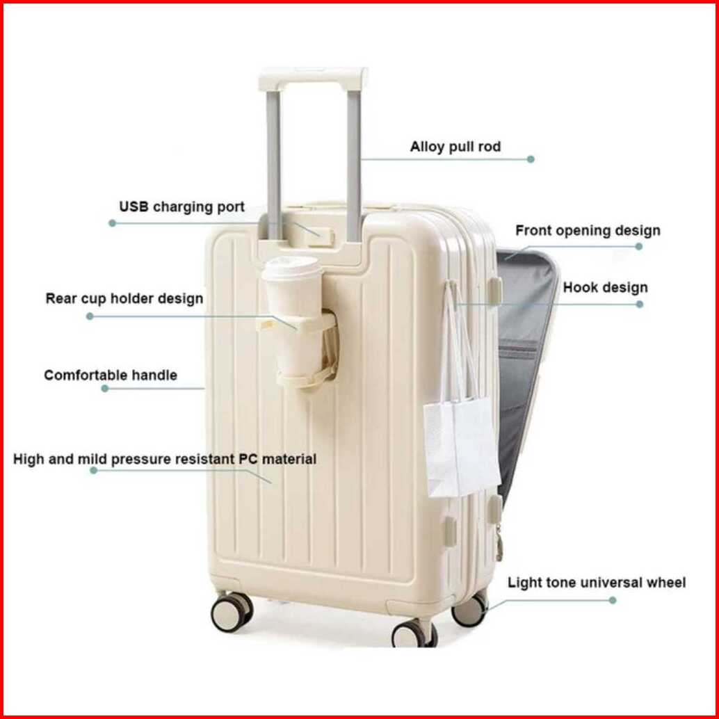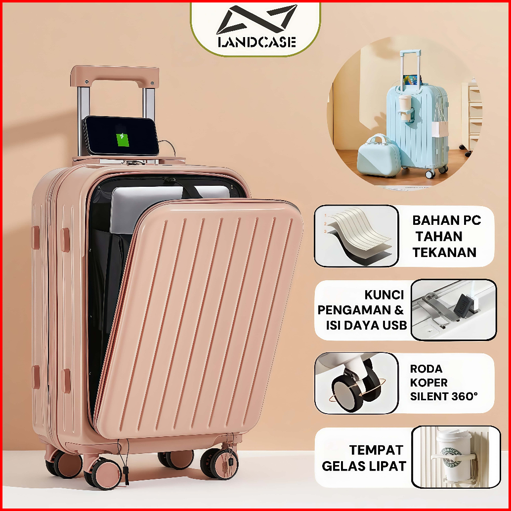 Landcase Koper Kabin Bagasi Stand Cup Charger Usb Koper 24 Inch Kabin Anti Gores Baret Pecah Tahan Banting Kabin Laptop