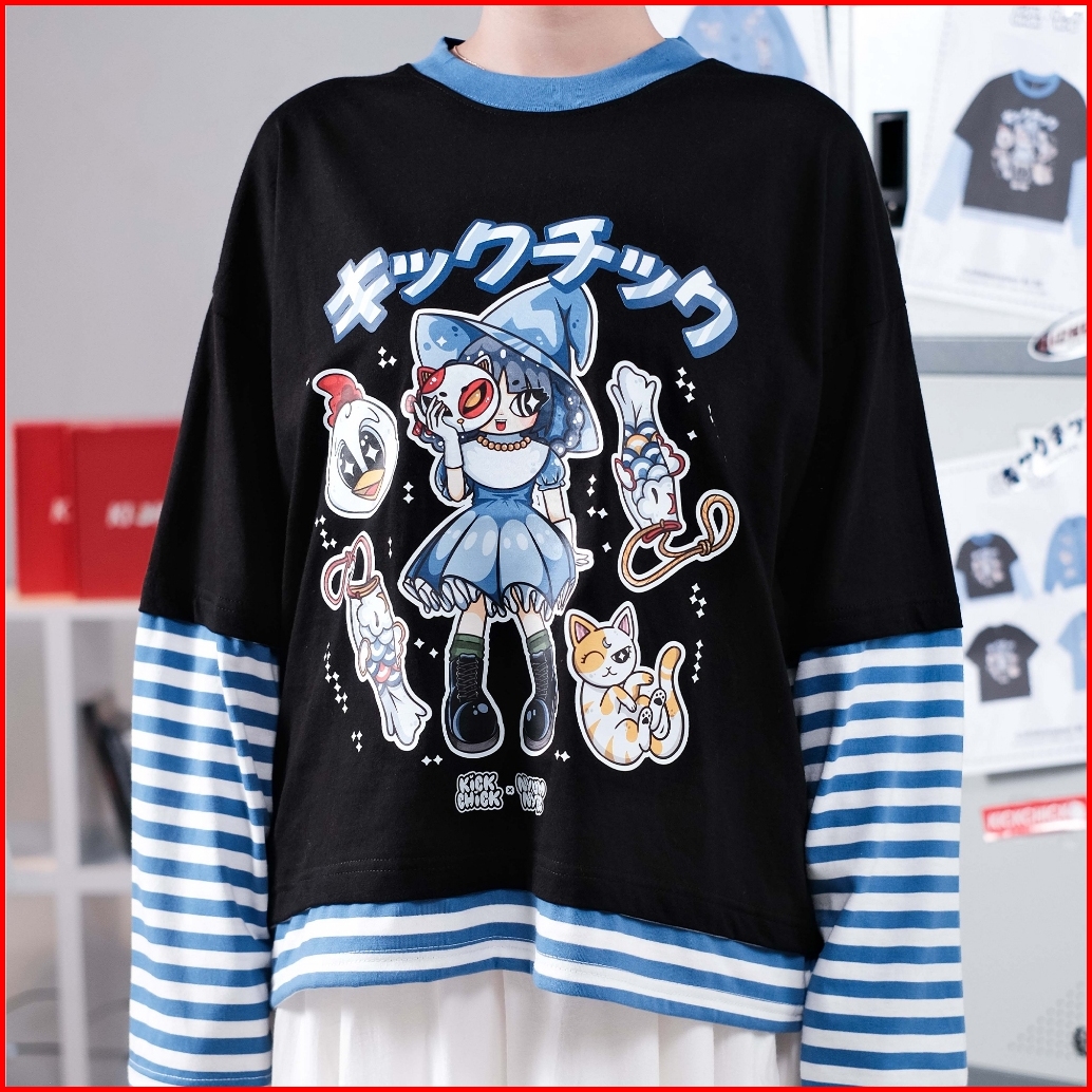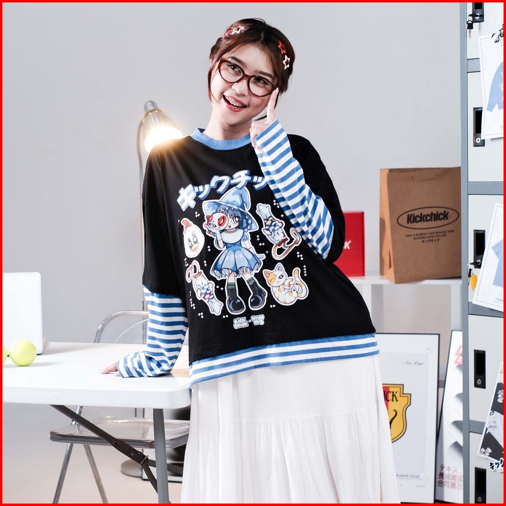 Kickchick X Nyumnya Longsleeve Boxy Doublesleeve Stripe Nyumnya Japans Kaos Lengan Panjang Kc-nyum-ds01