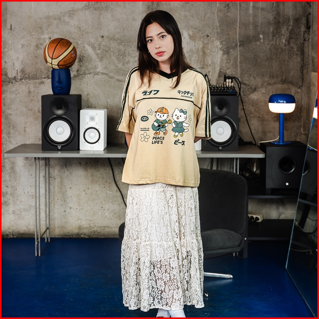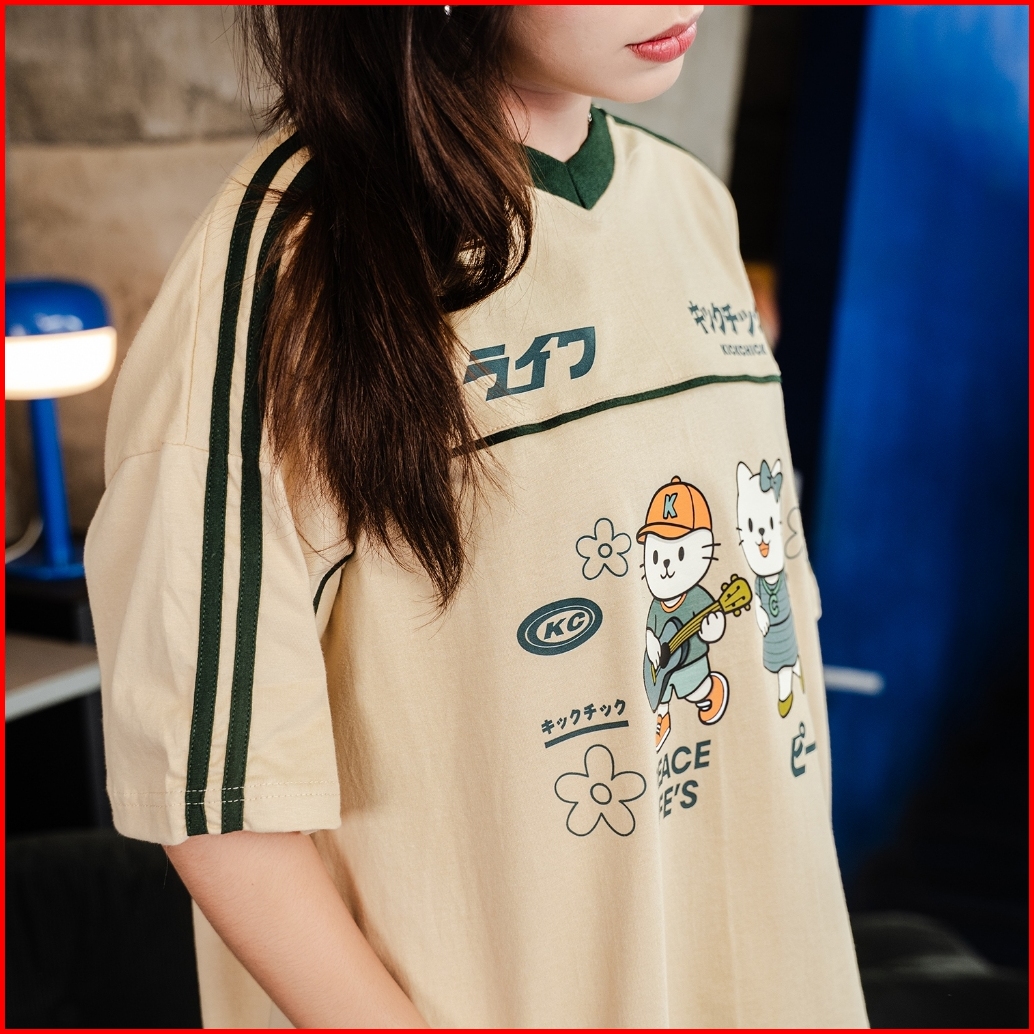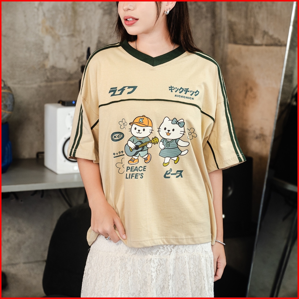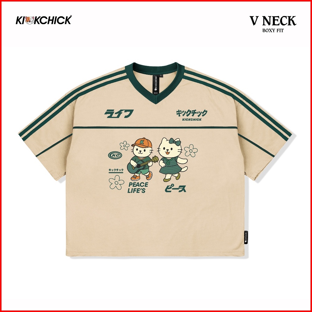 Kickchick V-neck Boxyfit Chill Date Mocca Green Kaos Oversize Boxy Atasan Kc-ovzbx-vn005