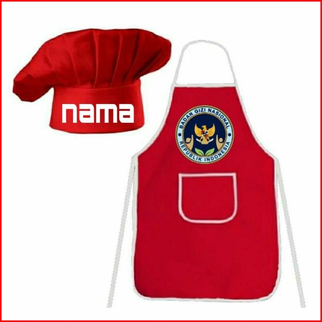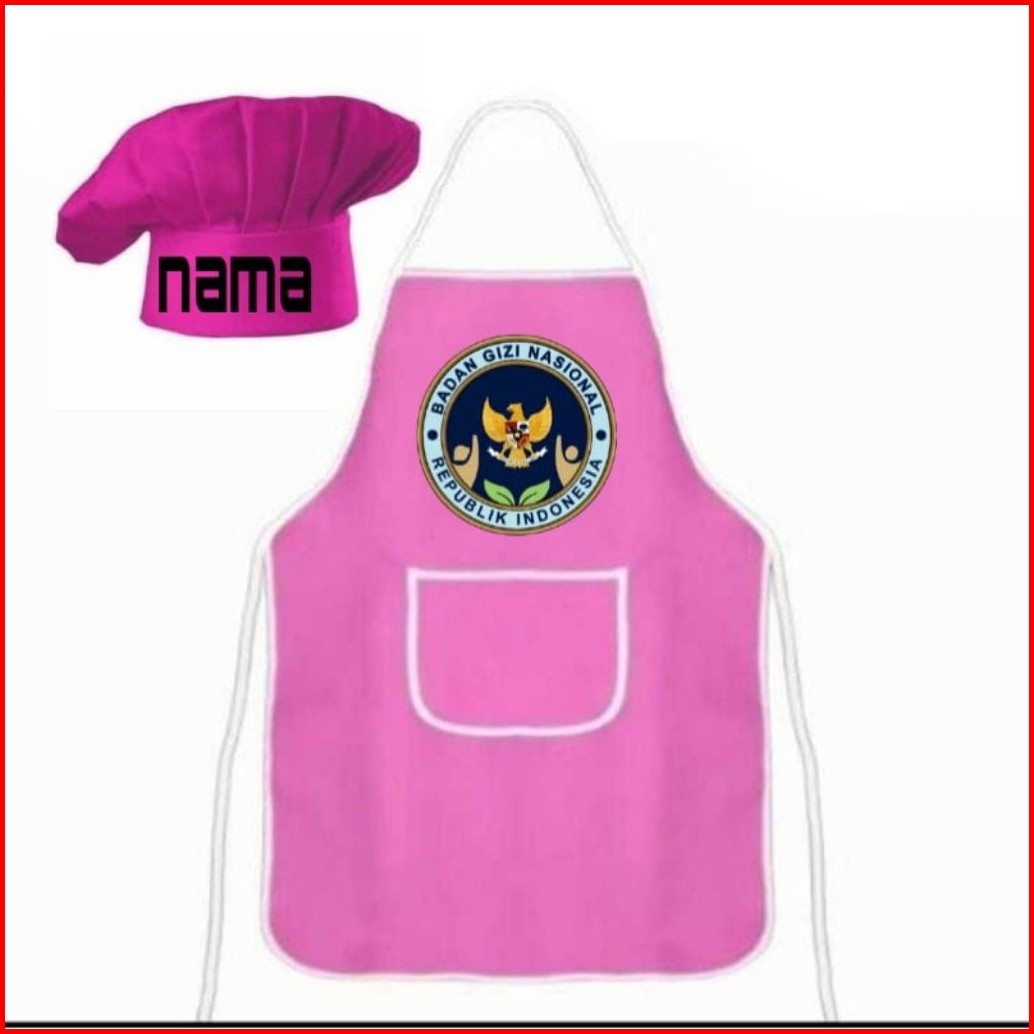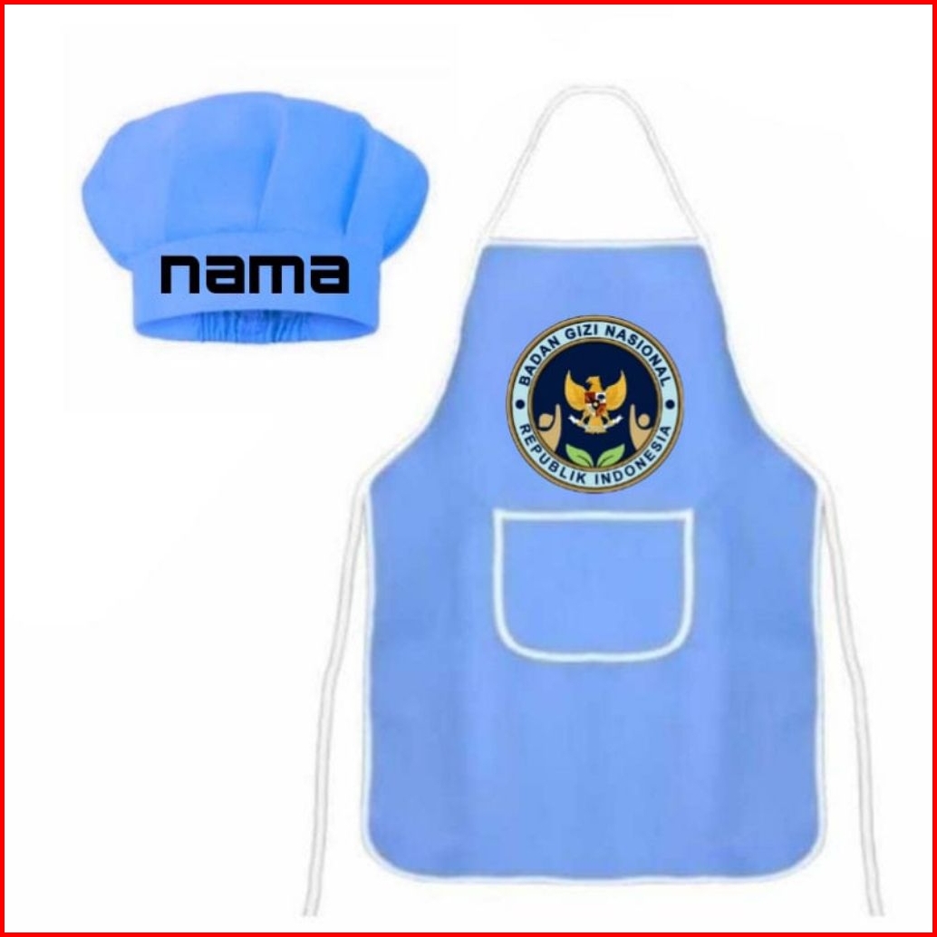 Celemek Apron Dewasa 1set Topi Bisa Pake Nama Suka-suka Dan Ada Gambar Bgn