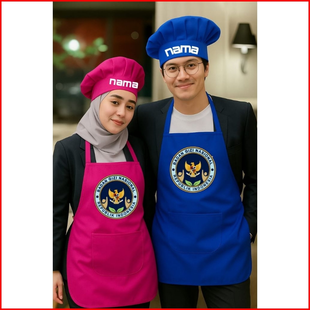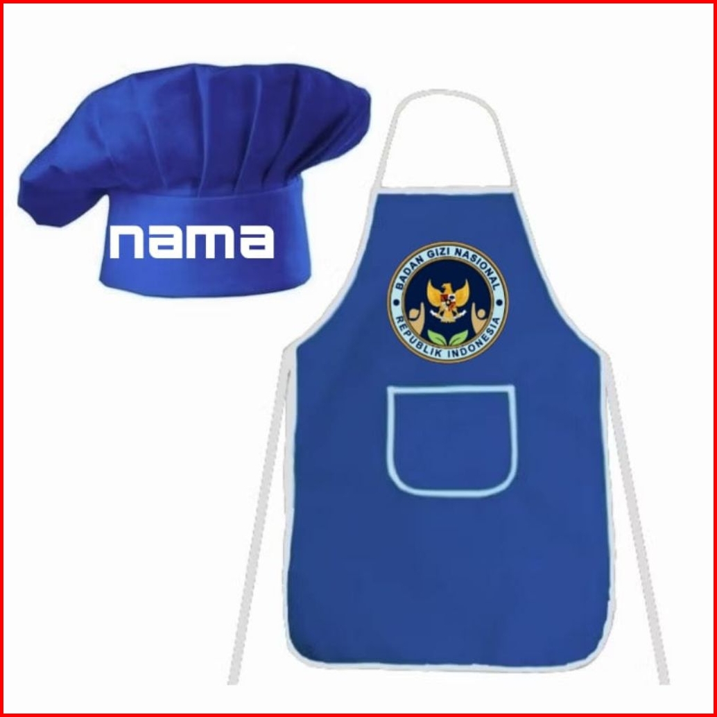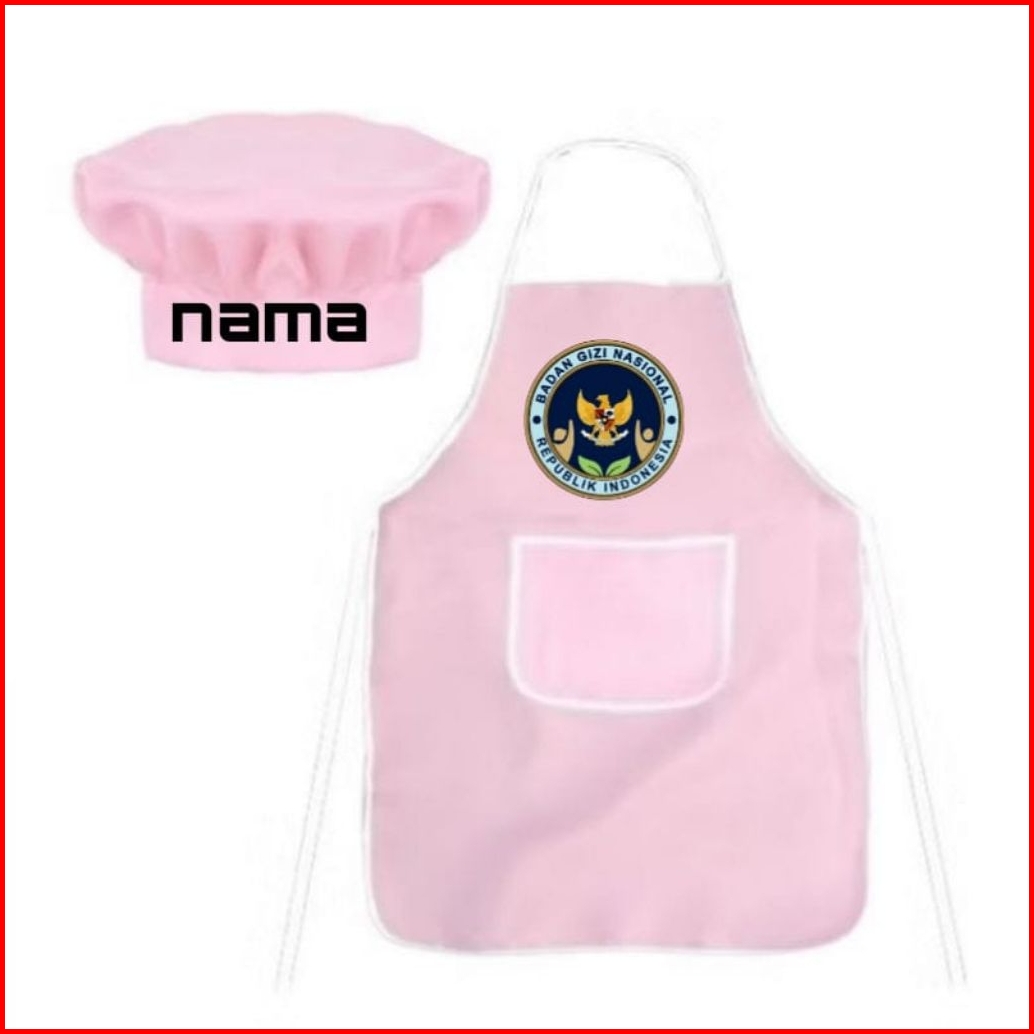 Celemek Apron Dewasa 1set Topi Bisa Pake Nama Suka-suka Dan Ada Gambar Bgn