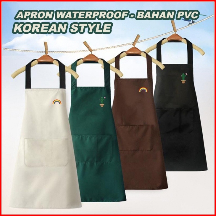 Apron Waterproof Anti Minyak Bahan Pvc Celemek Masak Dapur Barista Korean Style