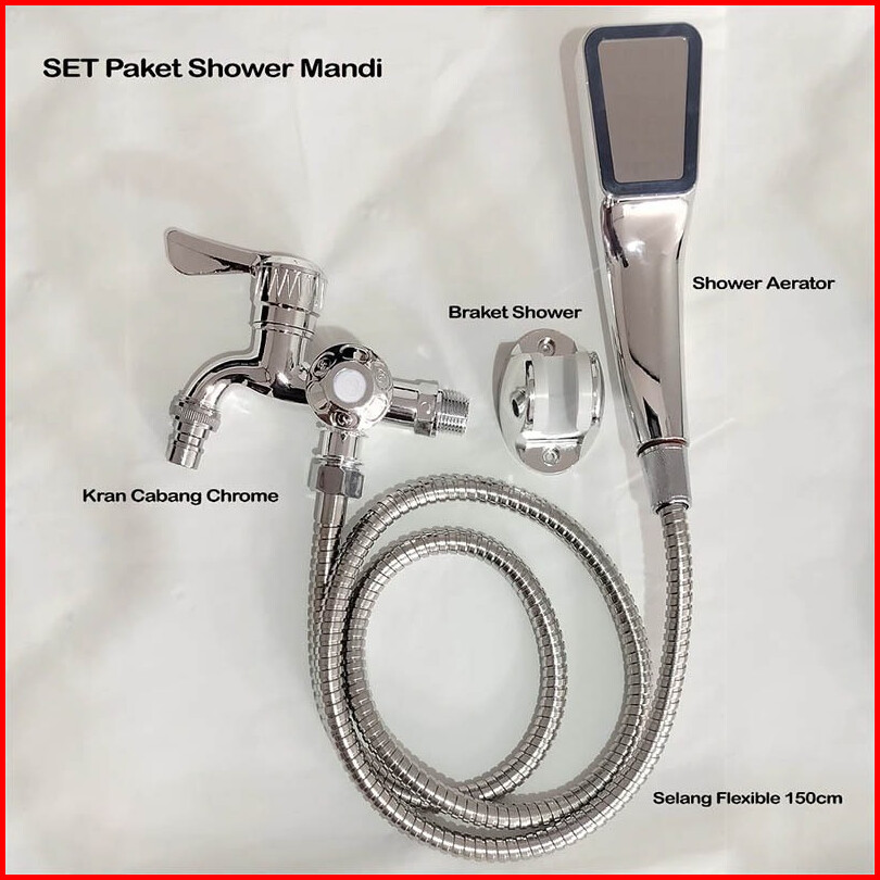 4 In 1 Paket Komplit Kran Chrome Shower Mandi Shower Aerator Paket Shower Kamar Mandi Dan Kran Shower Cabang 300 Lubang