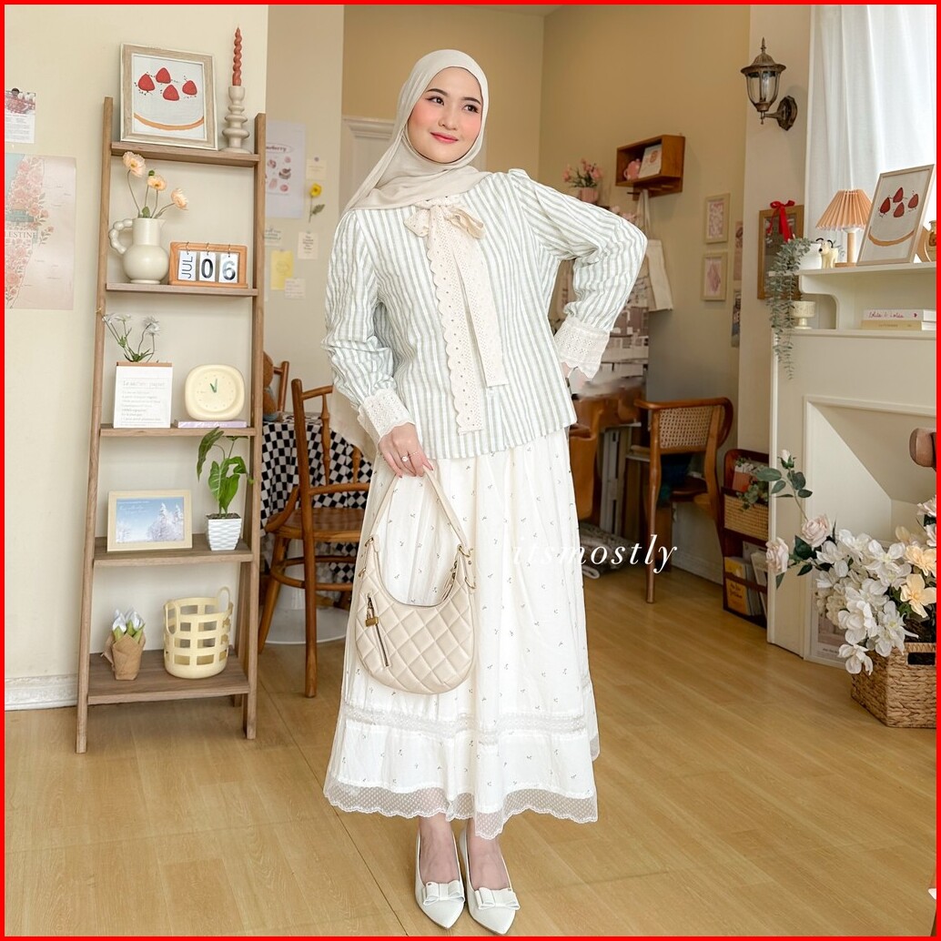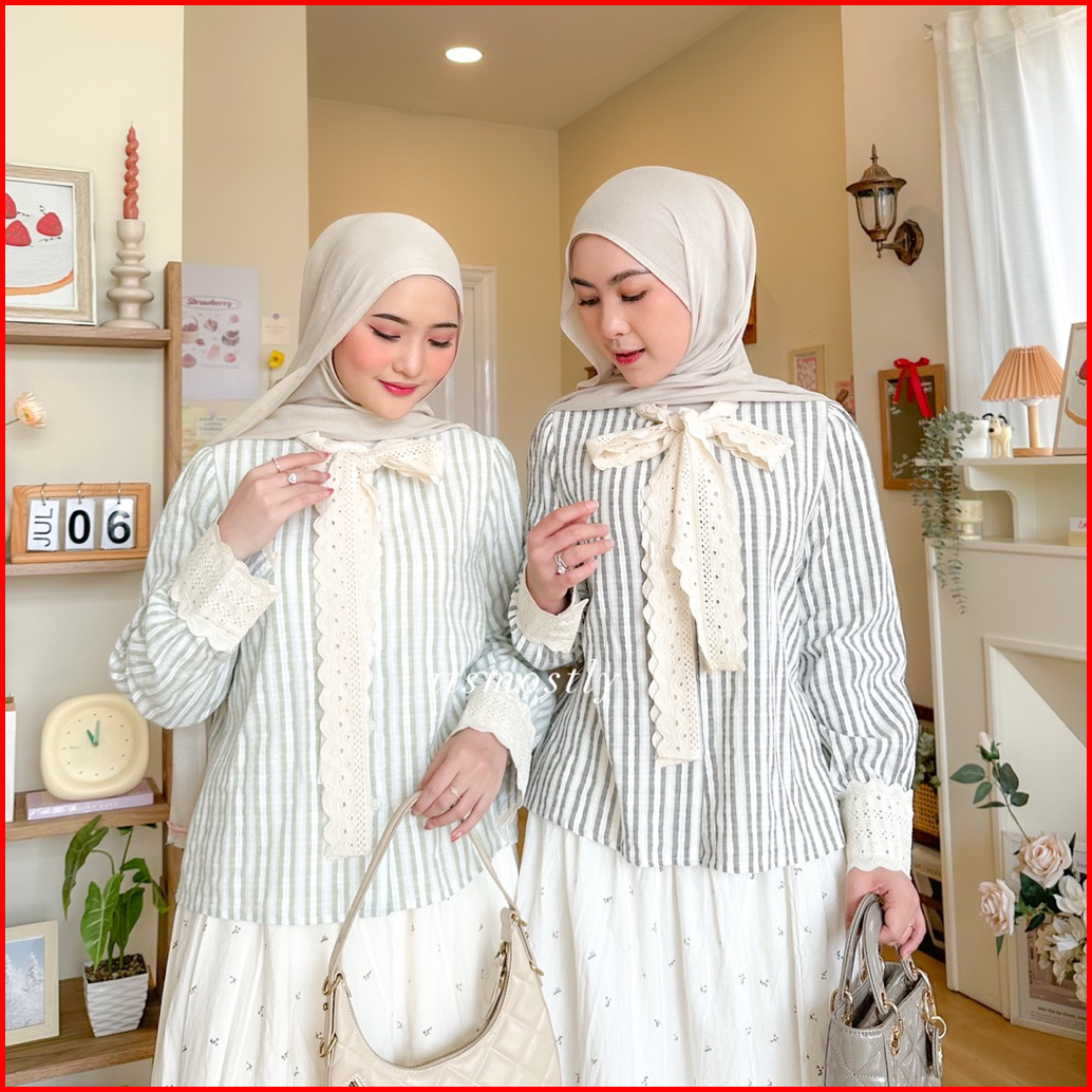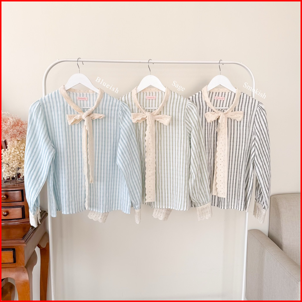 Itsmostly - Lui Shirt Ribbon Stripe Blouse