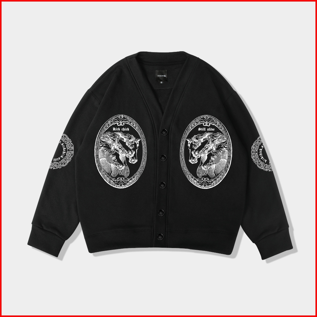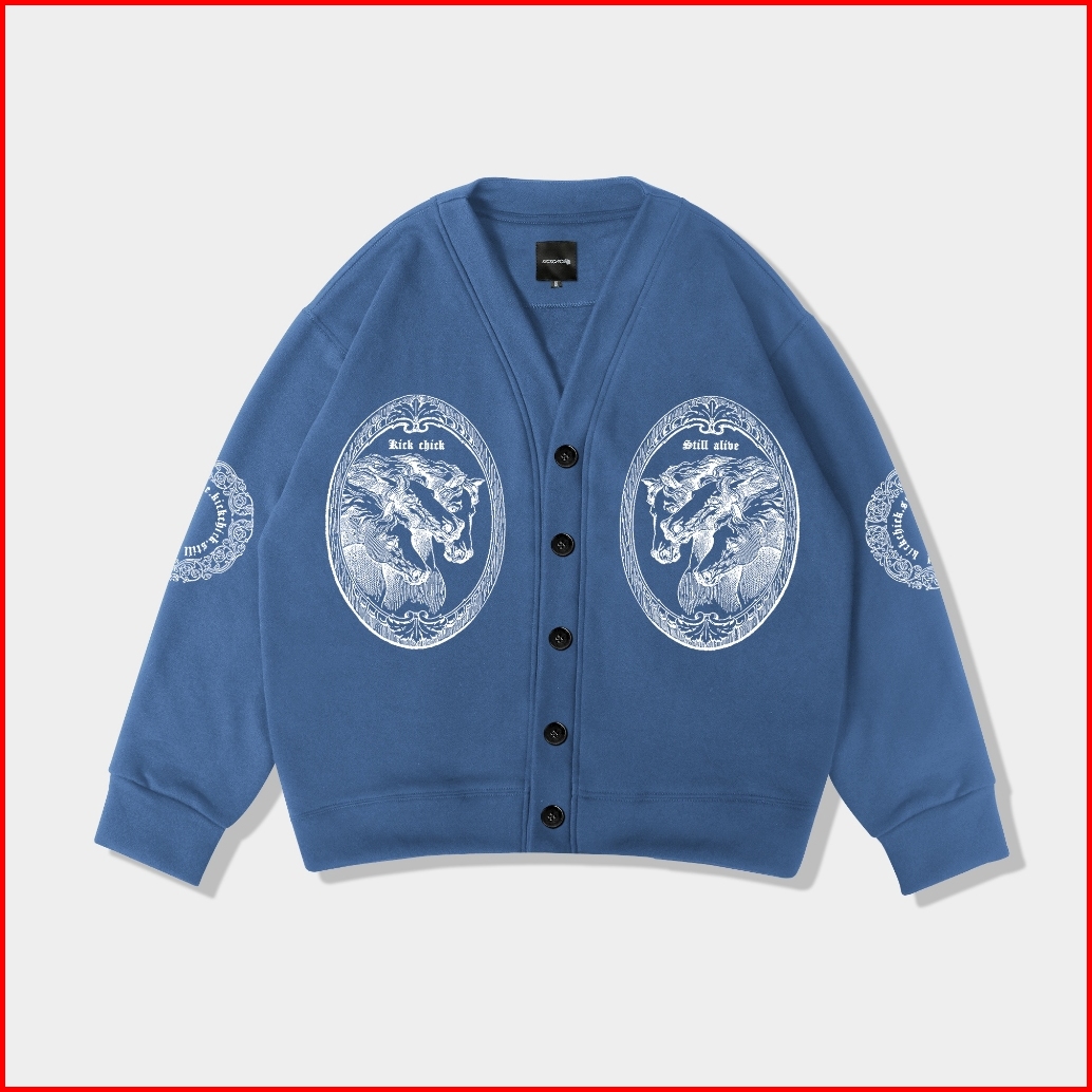 Kickchick Cardigan Horsemen Black Steel Blue Oversize Outer Lengan Panjang Kccg001