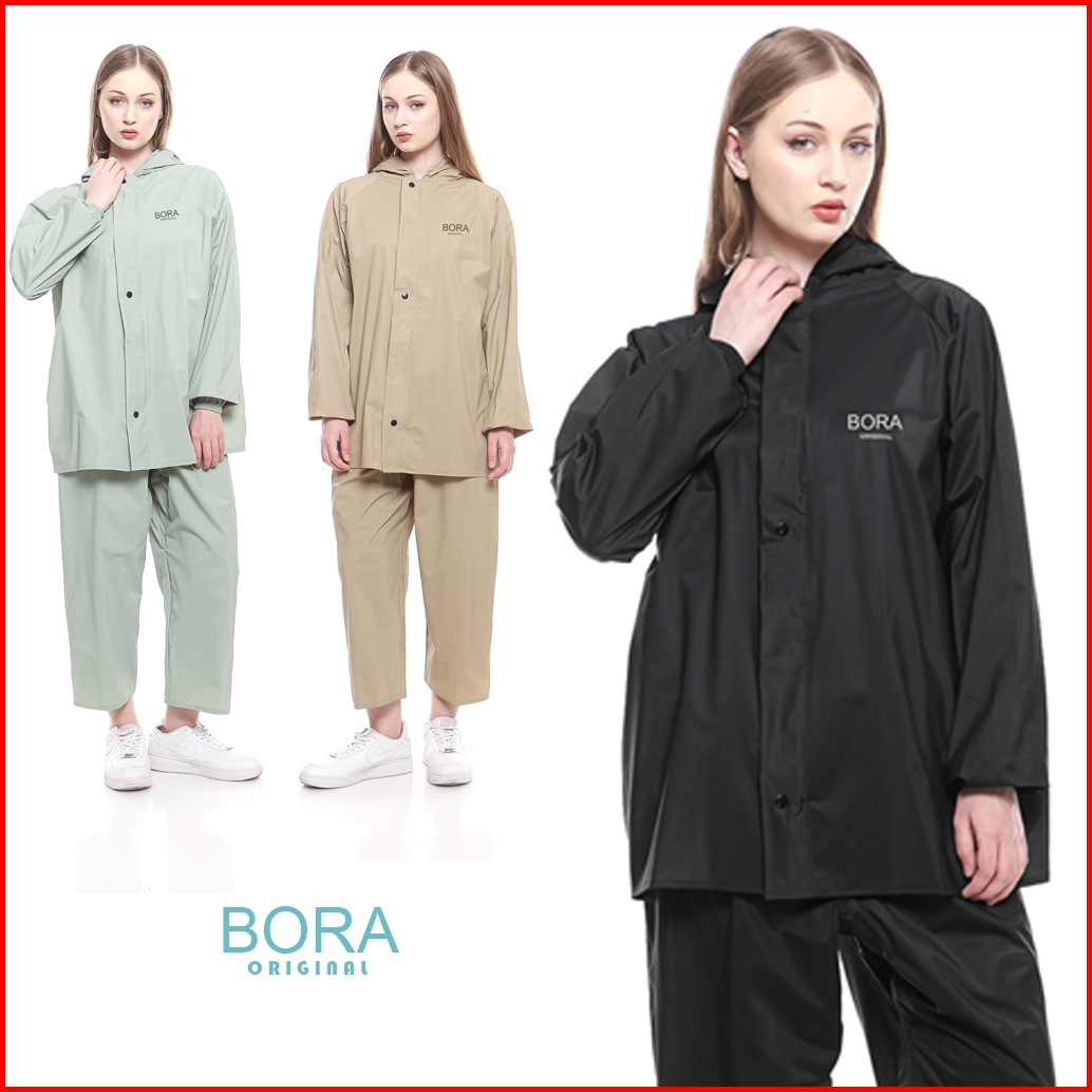 Bora Jas Hujan Setelan Pria Wanita Tebal Kuat Elastis Anti Rembes