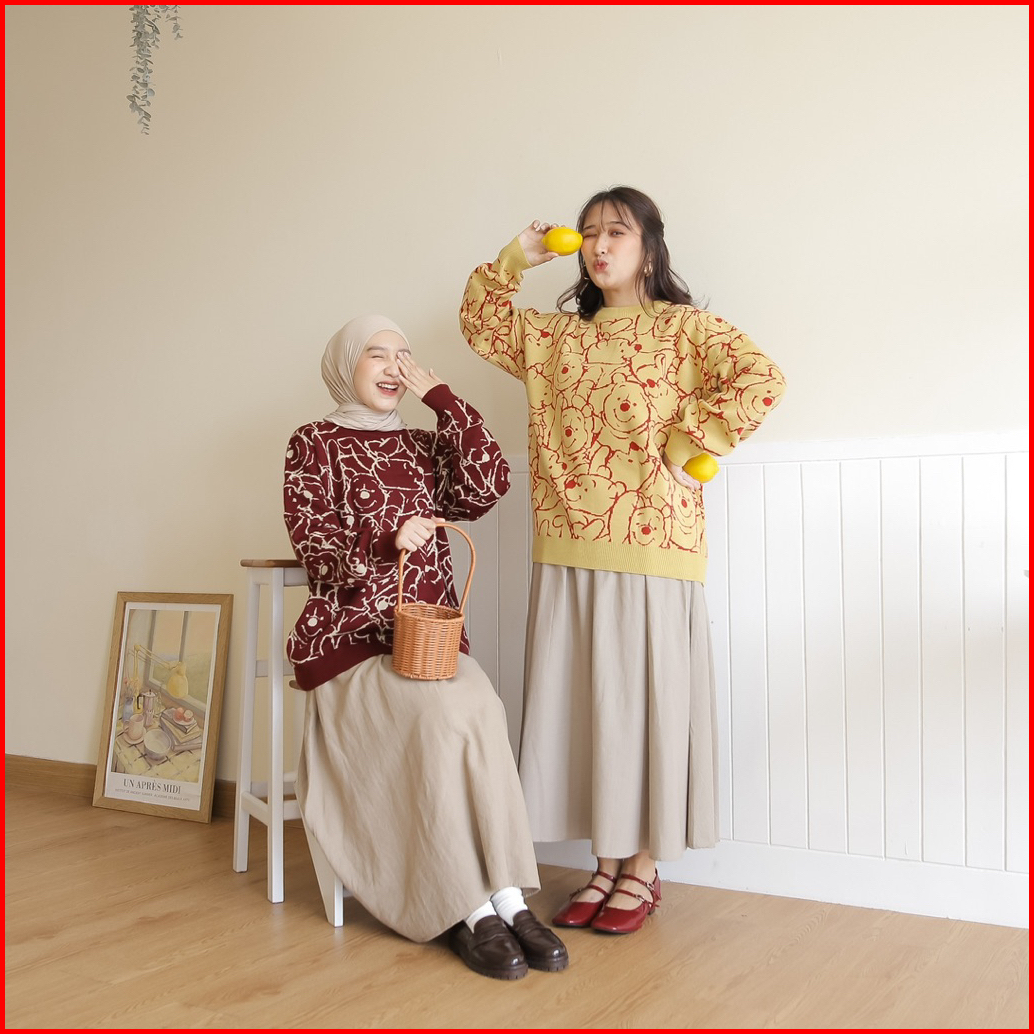 Midun.project - Sweater Bear Atasan Rajut Wanita Oversize Tebal