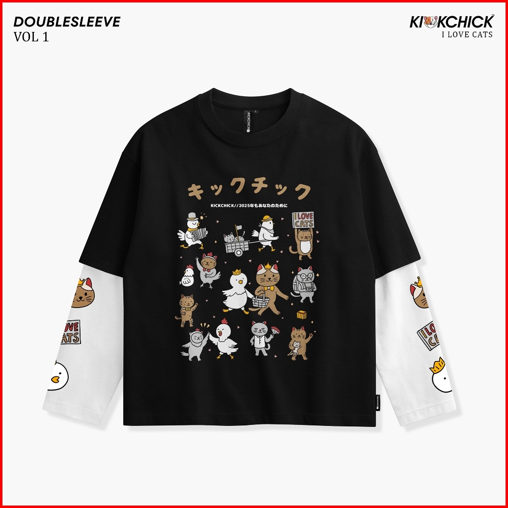Kickchick Doublesleeve I Love Cats Black White Kaos Atasan Oversize Lengan Panjang Kc-ds014