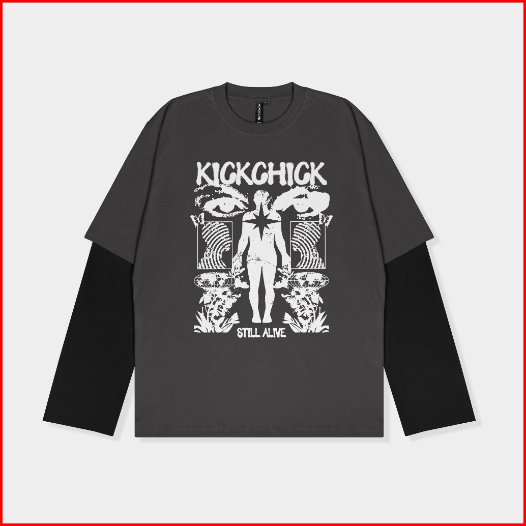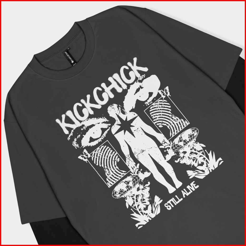 Kickchick Double Sleeve Daze Black Steel Blue Kaos Oversize Lengan Panjang Kcds009