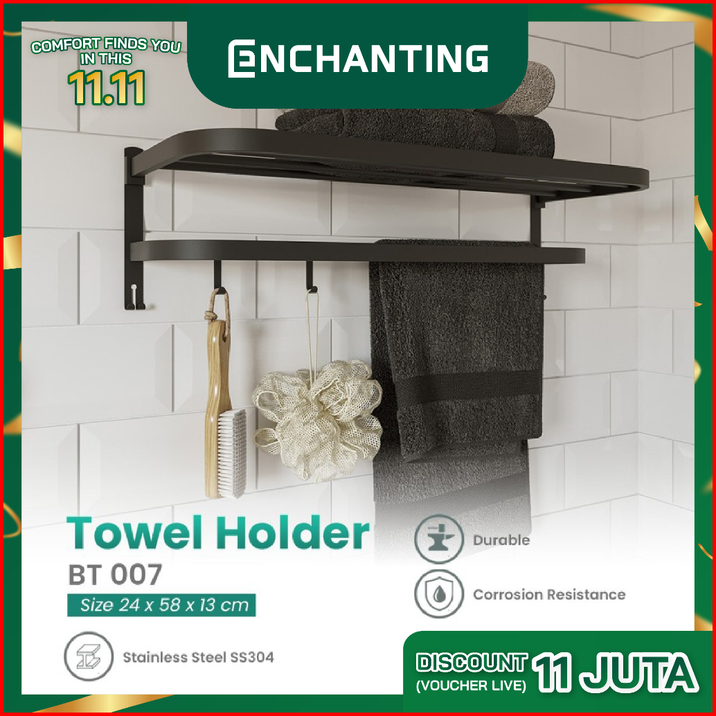 Rak Tempat Handuk Stainless Lipat Hitam Europe Enchanting Bt007